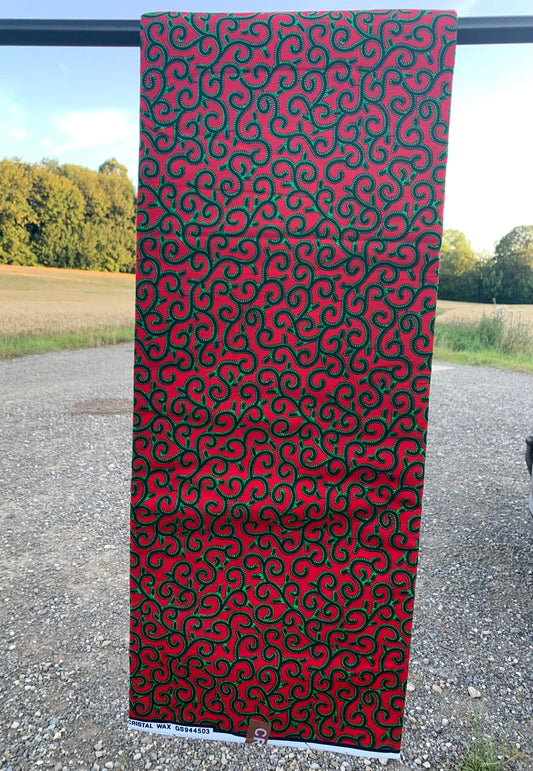 Tissus Wax Africain 1 à 5 Yards Marque "Crystal" Wax du Ghanéens Motif Macaroni Rouge