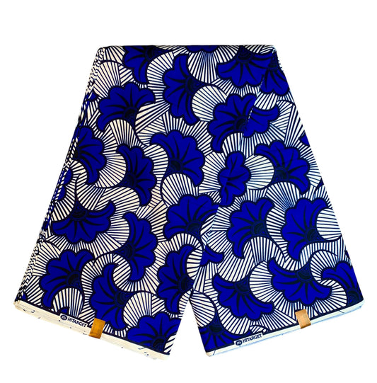Tissus Wax Africain 100% Coton Ankara 1 à 12 yard Wax Hitarget Fleur de mariage bleu Roi.