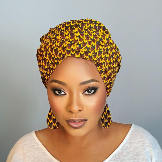 Ensemble Boucles d'Oreilles et Bonnet Satin en Wax | Turban en Wax avec Doublure Satin Lined hair