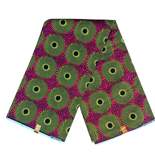 Tissus Wax Africain 100% Coton Ankara 1 à 12 yards Wax Hitarget petit Disques Rose Jaune