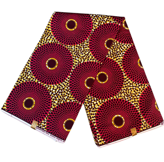 Tissus Wax Africain 100% Coton Ankara 1 à 12 yards Wax Hitarget Ankar Disques Bordeaux