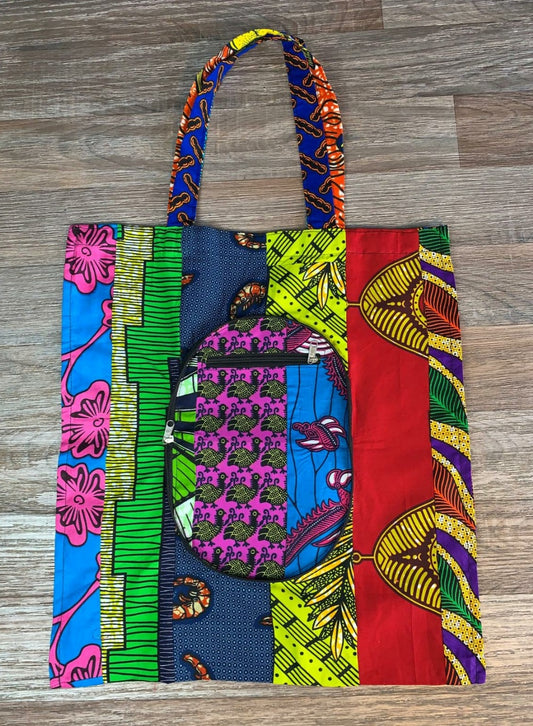 Tote Bag Patchwork En Wax. Wax 100% Coton XL Pliable avec Fermeture Éclaire. Wax de qualité supérieure