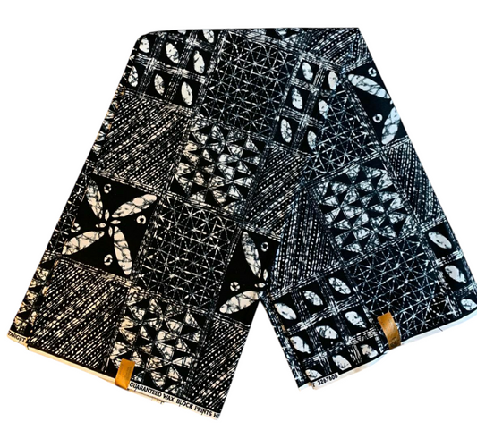 Afrikanische Wachsstoffe, 100 % Baumwolle, Ankara-Design, 1 bis 6 Yards, Wax Hitarget, authentisches Muster: Ethnische Yoruba-Kollektion, Weiß und Schwarz