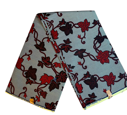 Afrikanischer Wachsstoff, 100 % Baumwolle, Ankara-Design, 1 bis 6 Yards, Authentisches Wachs-Hitarget-Muster: Weinblätter