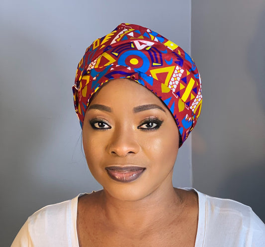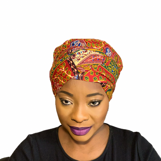 Satinhaube im roten Turban | Wachsturban mit Satinfutter