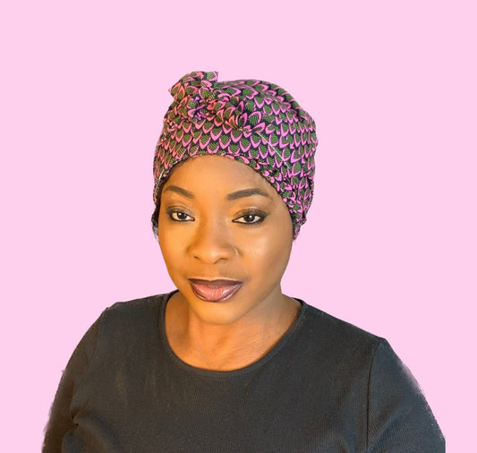 Satin-Turban-Hut Rosa | Mit Satin gefütterter Wachs-Turban