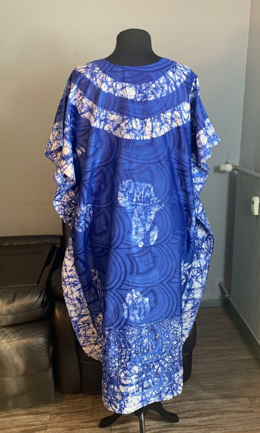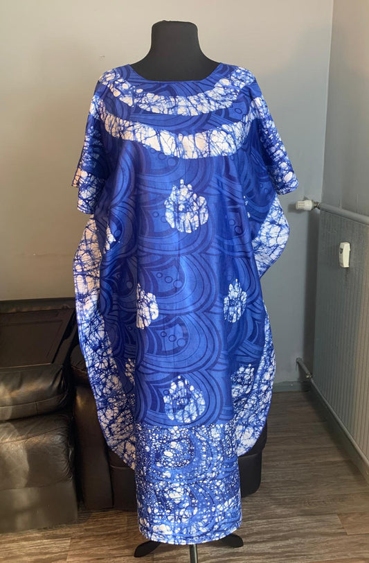 Robe Bazin Batik Bleu Roi Style Bohème a Motif, Design Motif casa samba. L'art 100% Coton très doux