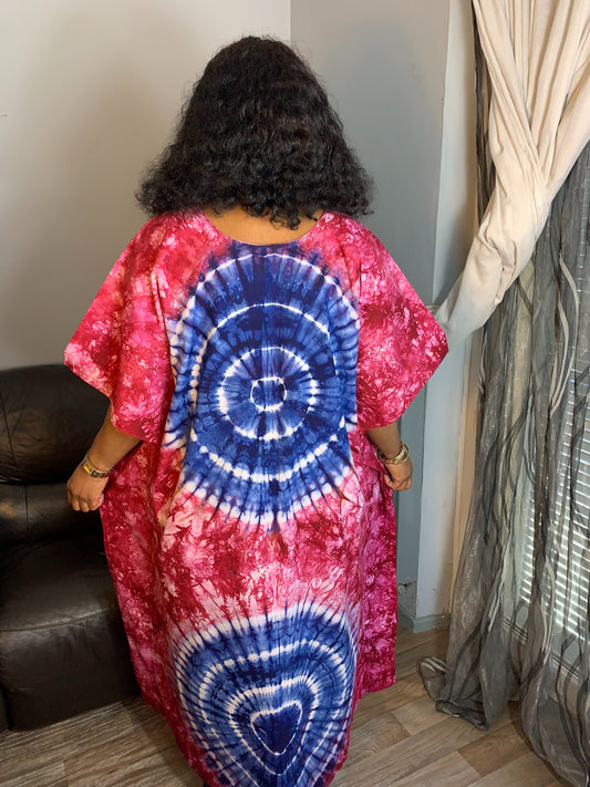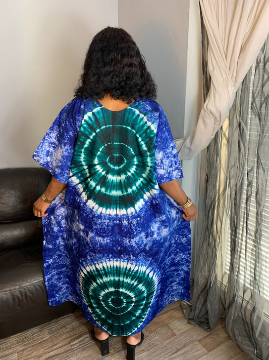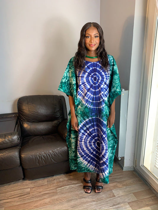 Langes Batikkleid, Tye and Dye, handgefertigt von Adire