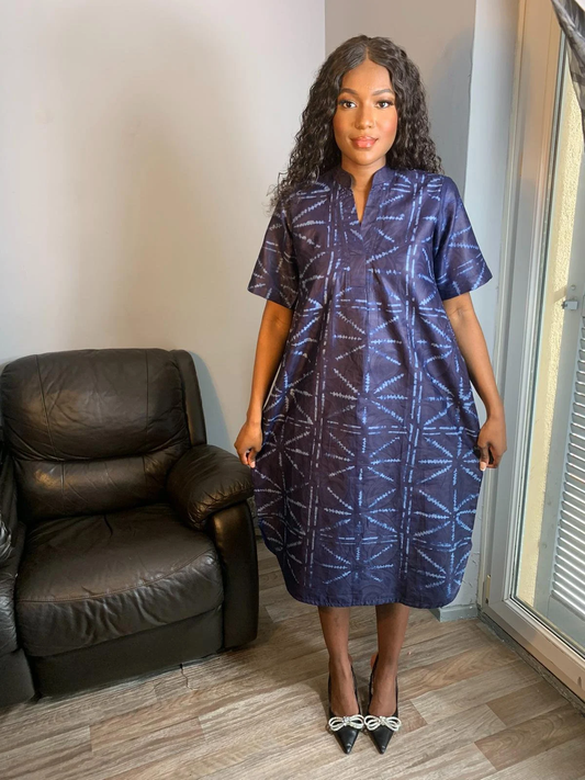 AusverkauftIndigoblaues Boubou-Kleid von Tye And Dye Adire