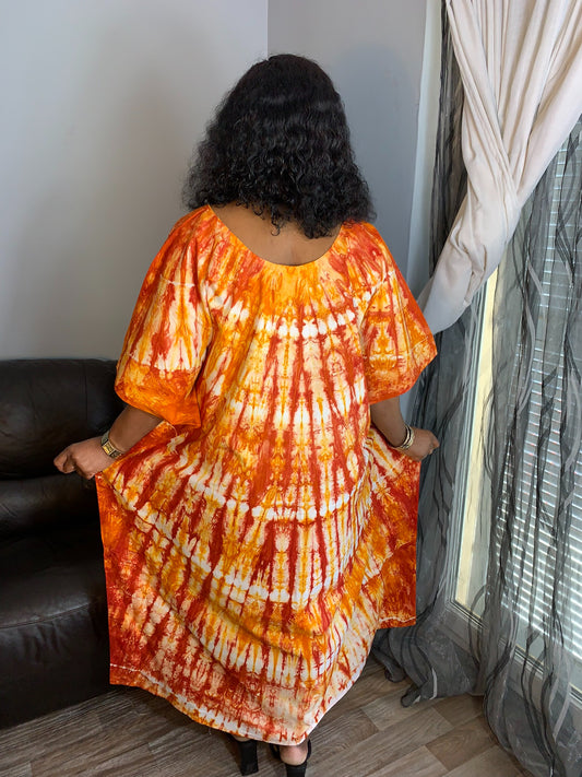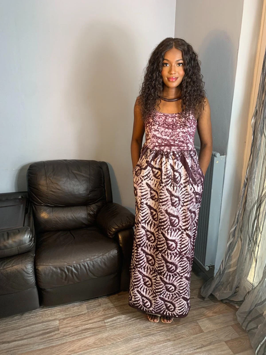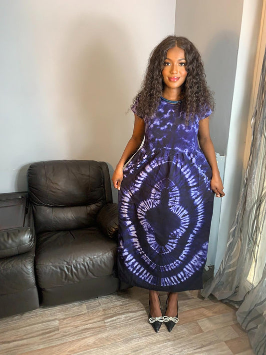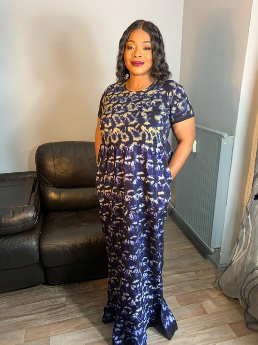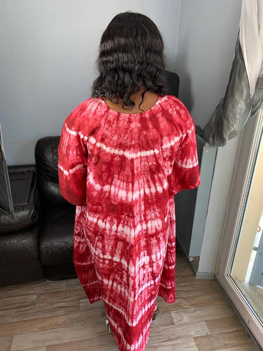 AusverkauftLanges Batik-Leinenkleid Tye And Dye Adire
