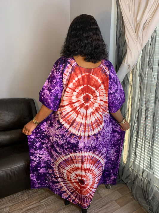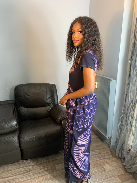 Lila Tye and Dye Batik-T-Shirt-Kleid
