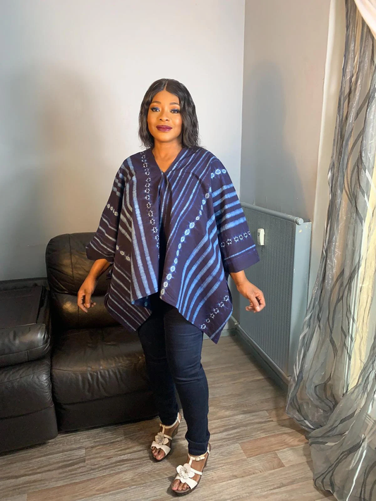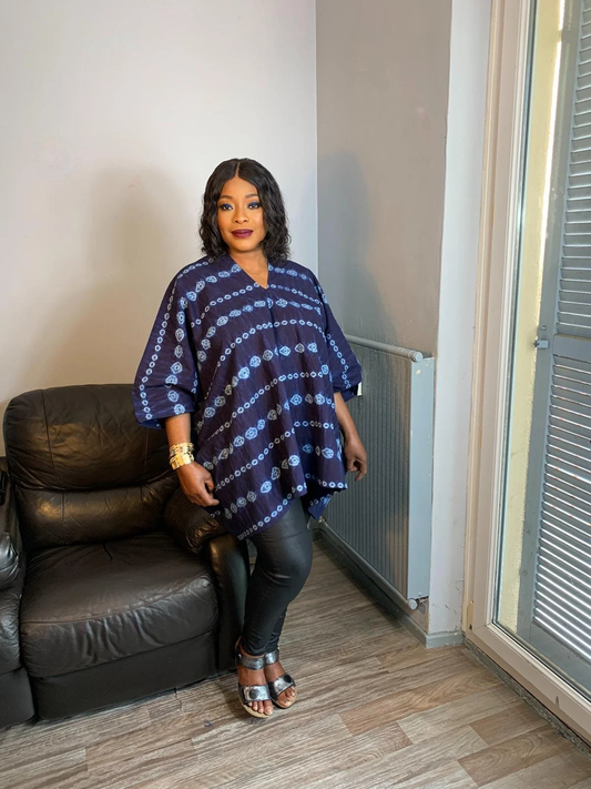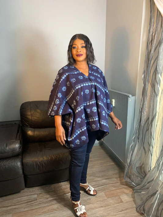Indigofarbenes Tye and Dye Batik Adire T-Shirt