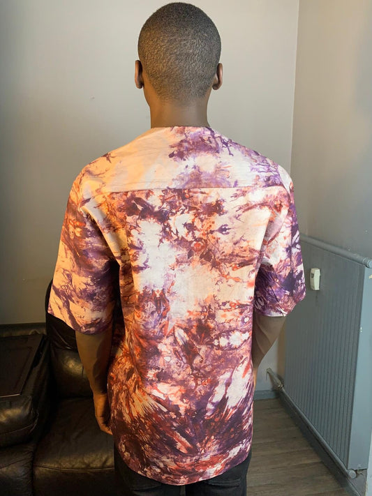 Batik Kampala Adire Wax Lila Baumwollshirt – handgefärbt