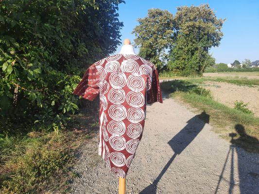 Batik Kampala Adire Wachsrotes Baumwollhemd für Herren – handgefärbt