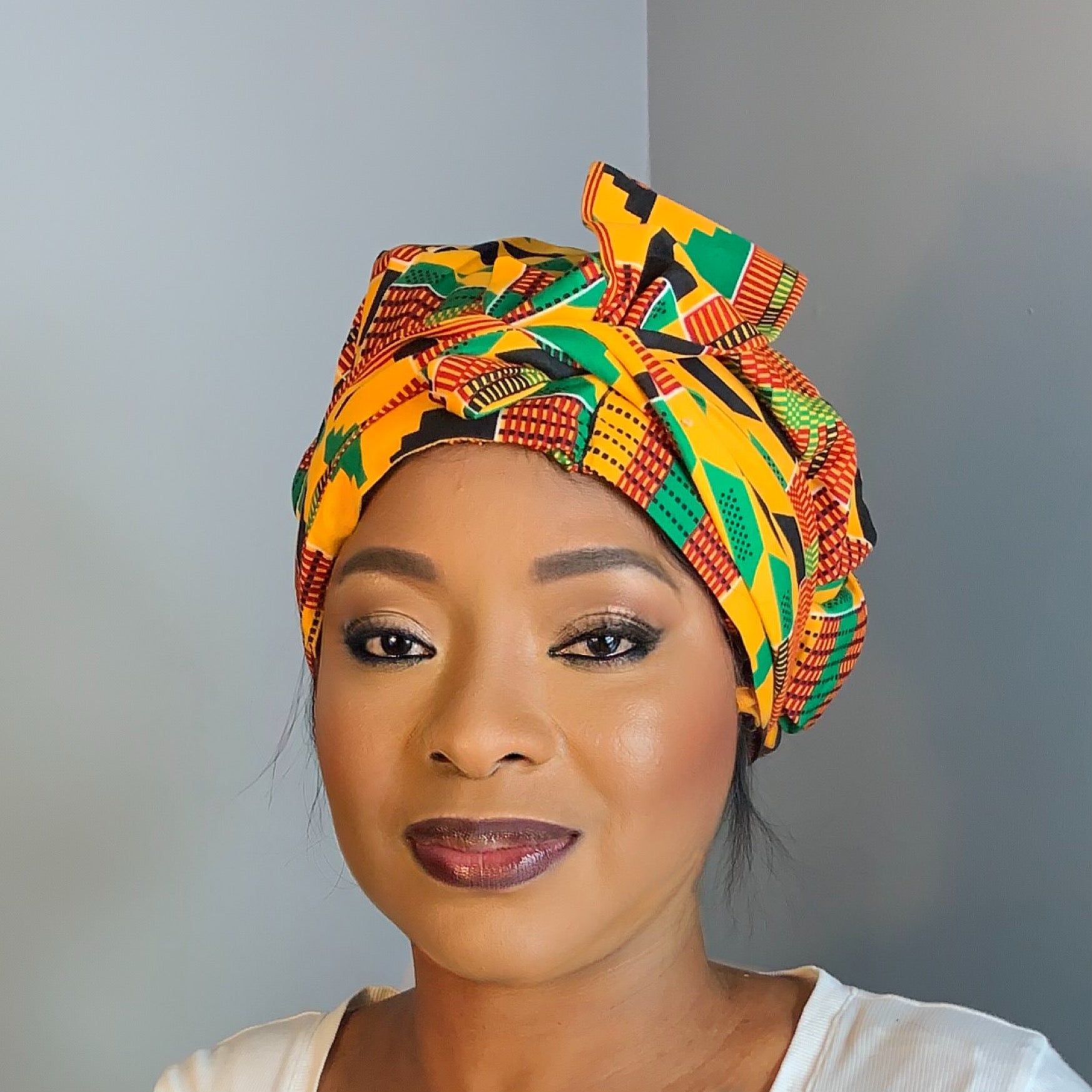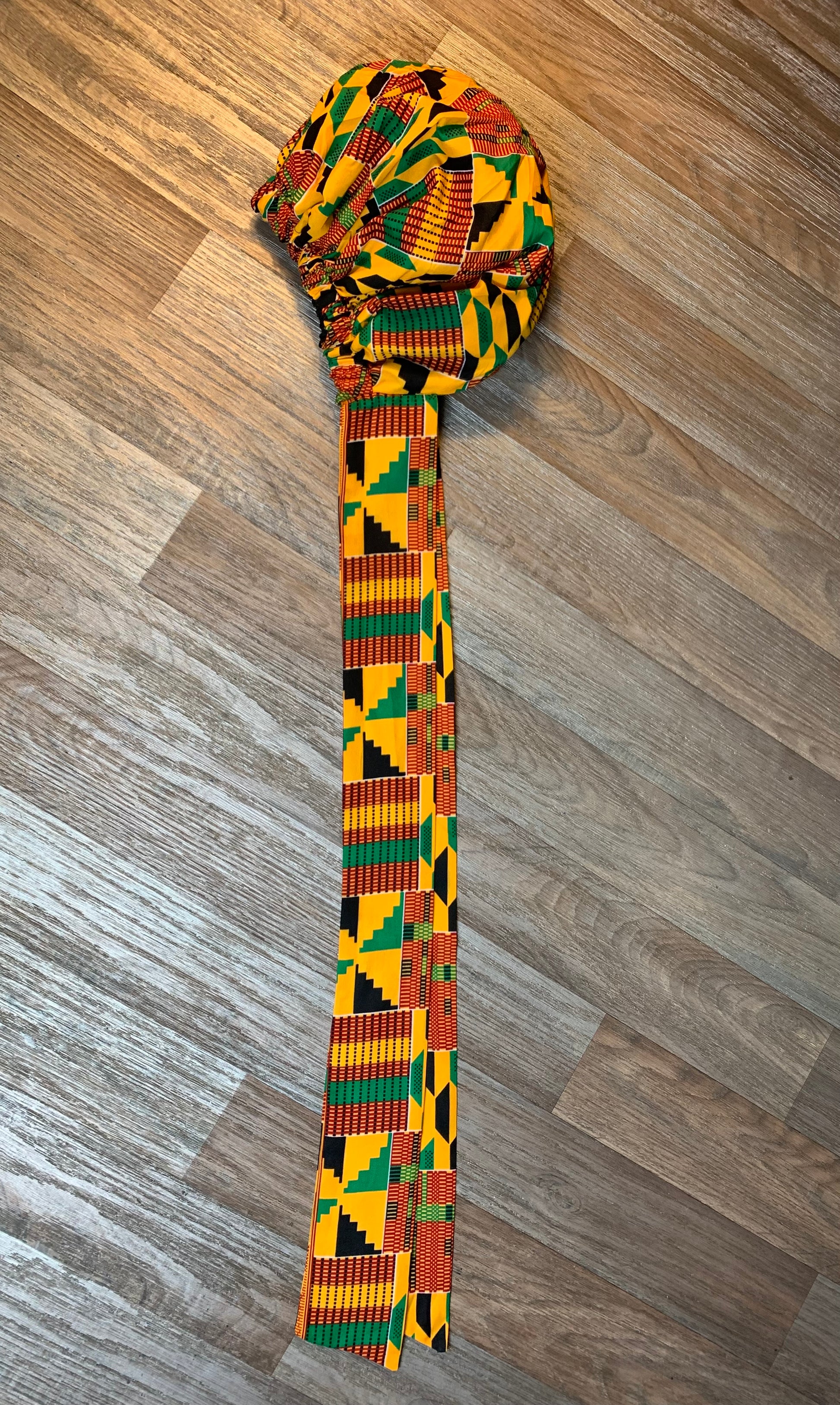 Entdecken Sie unseren großen handgefertigten Turban mit Kente-Muster. Mit schwarzem Satinfutter. Es ist auch für Anfänger leicht zu binden. Es kann in verschiedenen Stilen gebunden werden. Es kann auch an alle Arten von lockigem, Afro- und Rasta-Haar angepasst werden. Dieser Turban hat eine Einheitsgröße. Es kann zu allen Anlässen getragen werden, zu Ausflügen, zu Abenden mit Freunden oder auf Partys und sogar zum Schlafen. Dank der sehr großen Tiefe haben Sie ein angenehmes Tragegefühl. Sie werden diesen Wachsturban lieben, der Ihrem Haar Charme verleiht.