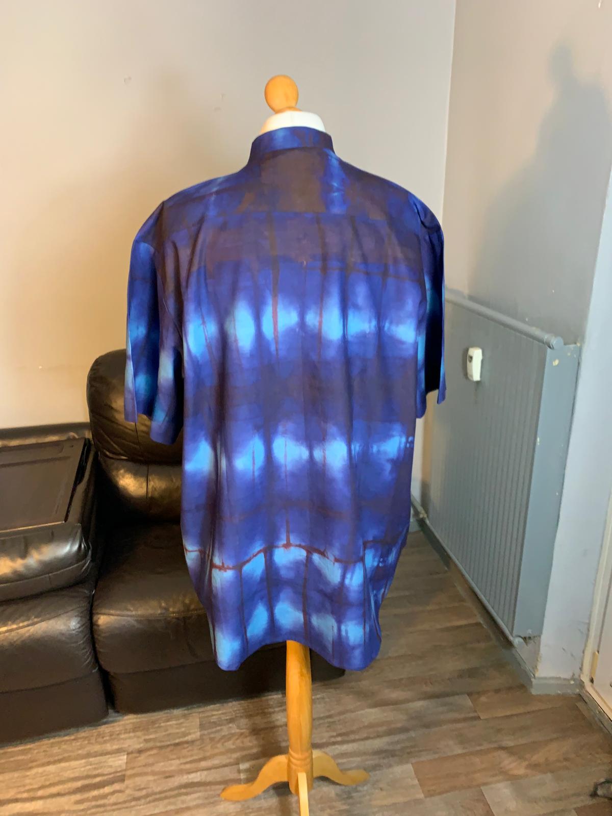 Indigoblaues Hemd. 100 % Baumwollmaterial. Auf handwerkliche Weise mit Blättern des Indigobaums handgefärbt.