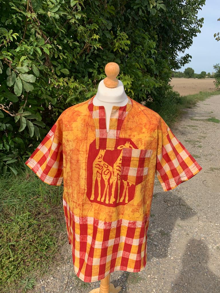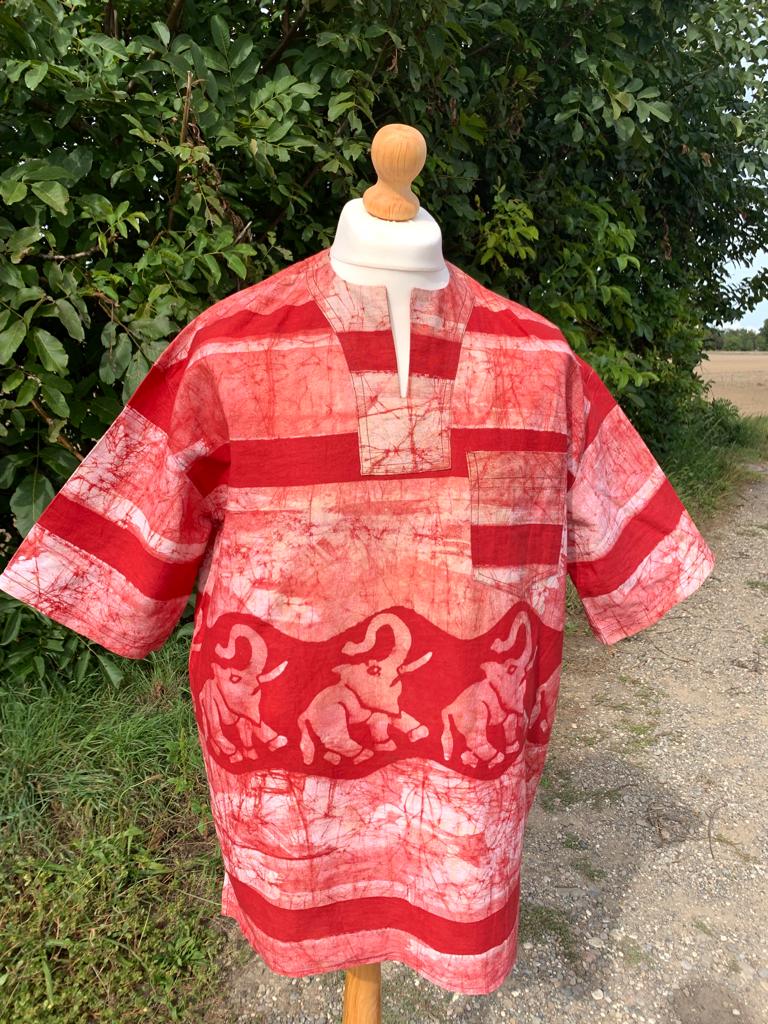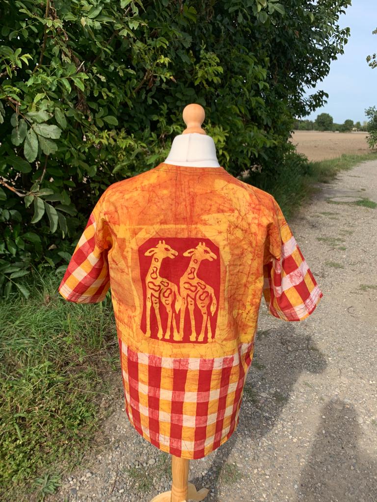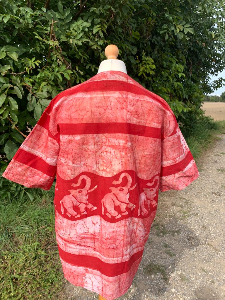Entdecken Sie unser einzigartiges afrikanisches Batik-Shirt mit Safari-Tiermotiven. Jedes Hemd wird in Westafrika nach der international bekannten nachhaltigen Yoruba-Methode handgefertigt, um außergewöhnliche handwerkliche Designs zu gewährleisten. Jedes Stück besteht aus 100 % Baumwolle und bietet höchsten Komfort und unvergleichliche Weichheit.