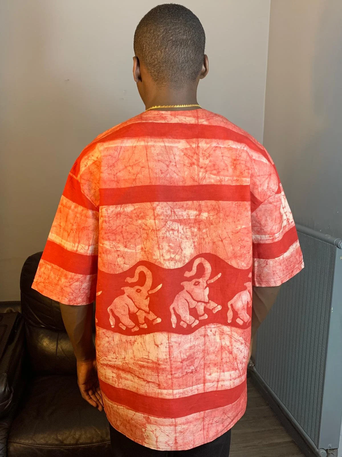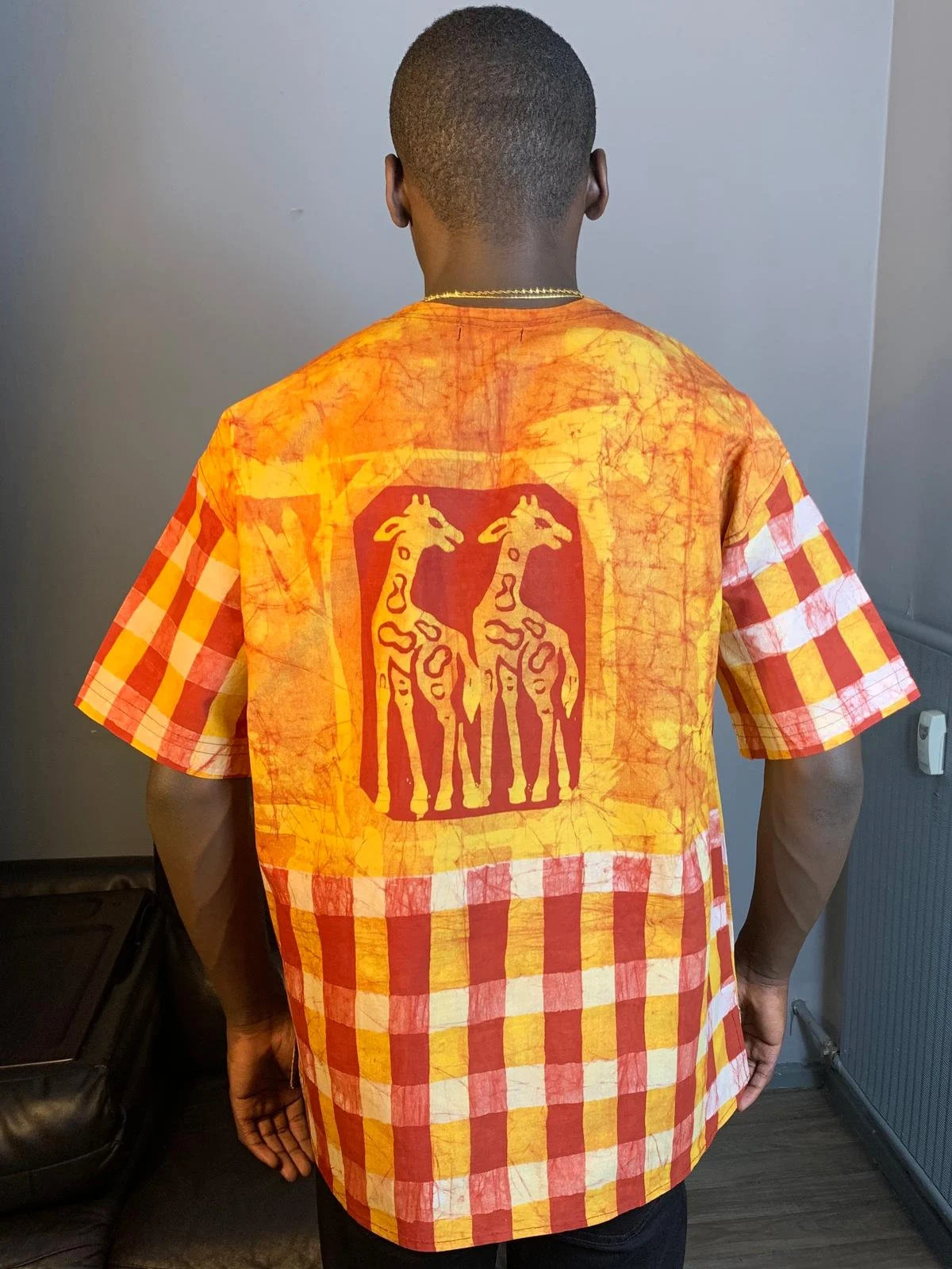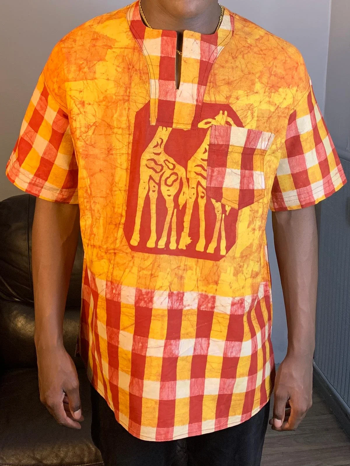 Entdecken Sie unser einzigartiges afrikanisches Batik-Shirt mit Safari-Tiermotiven. Jedes Hemd wird in Westafrika nach der international bekannten nachhaltigen Yoruba-Methode handgefertigt, um außergewöhnliche handwerkliche Designs zu gewährleisten. Jedes Stück besteht aus 100 % Baumwolle und bietet höchsten Komfort und unvergleichliche Weichheit.
