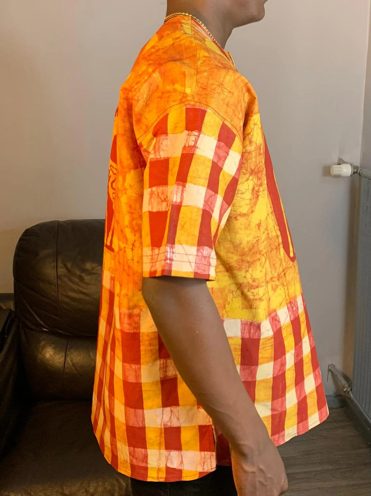 Baumwollhemd mit gemischtem Batik-Safari-Tiermuster – Gelb-Rot