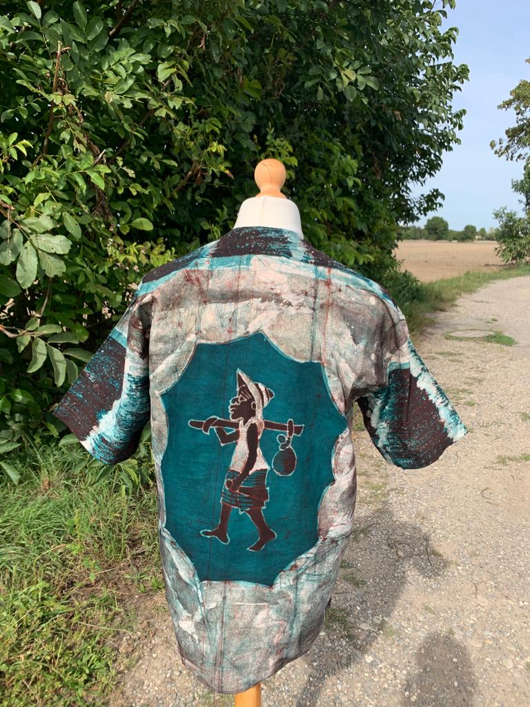 Entdecken Sie unser einzigartiges afrikanisches Batik-Shirt mit Safari-Tiermotiven. Jedes Hemd wird in Westafrika nach der international bekannten nachhaltigen Yoruba-Methode handgefertigt, um außergewöhnliche handwerkliche Designs zu gewährleisten. Jedes Stück besteht aus 100 % Baumwolle und bietet höchsten Komfort und unvergleichliche Weichheit.