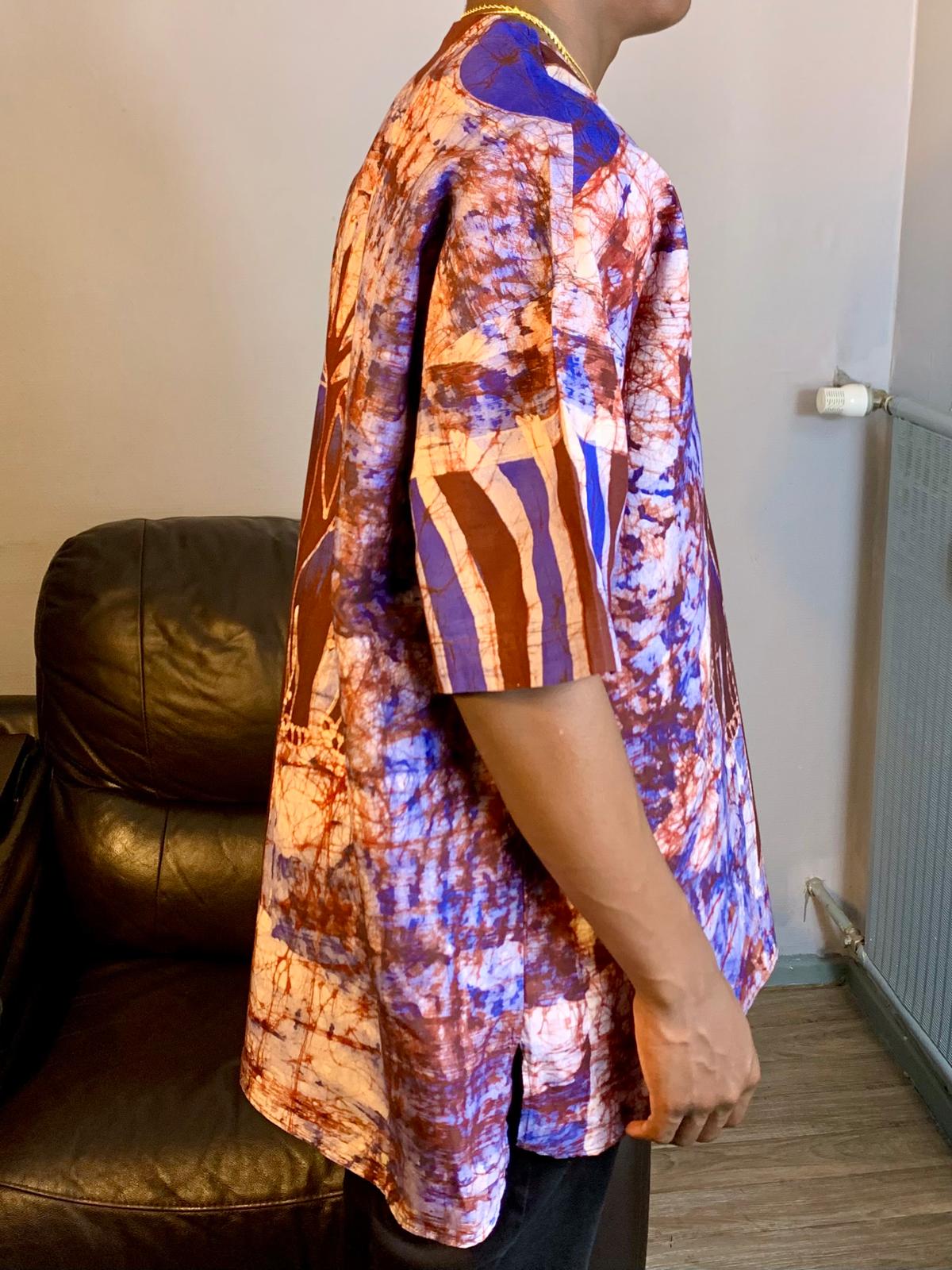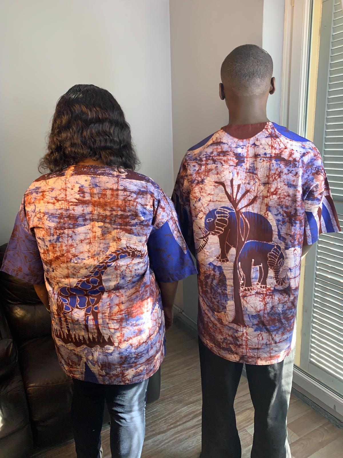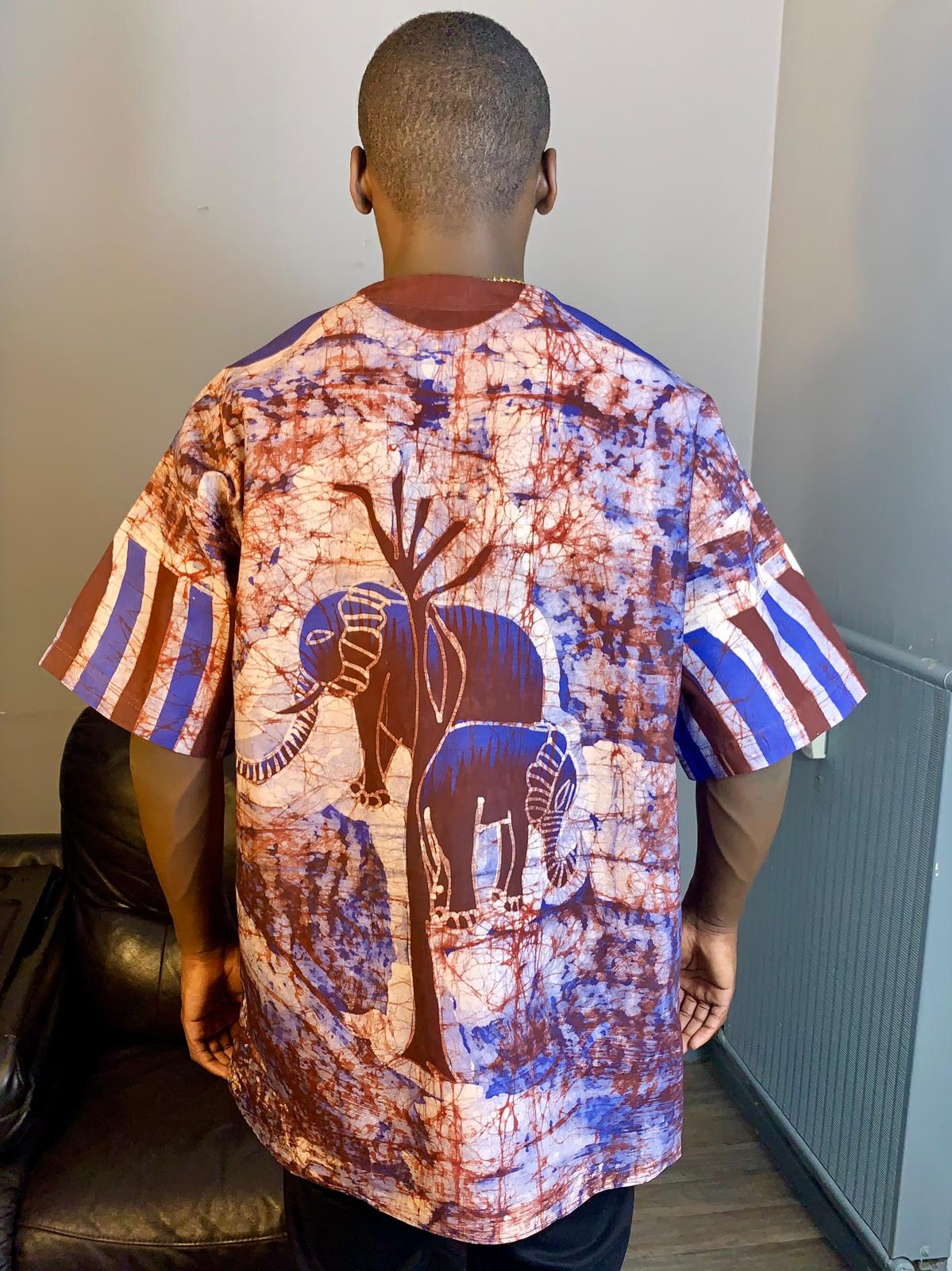 Entdecken Sie unser einzigartiges afrikanisches Batikhemd mit Safari-Tiermustern. Jedes Hemd wird in Westafrika nach der international bekannten nachhaltigen Yoruba-Methode handgefertigt, was außergewöhnliche handgefertigte Designs gewährleistet. Jedes Stück besteht aus 100 % Baumwolle und bietet höchsten Komfort und unvergleichliche Weichheit.