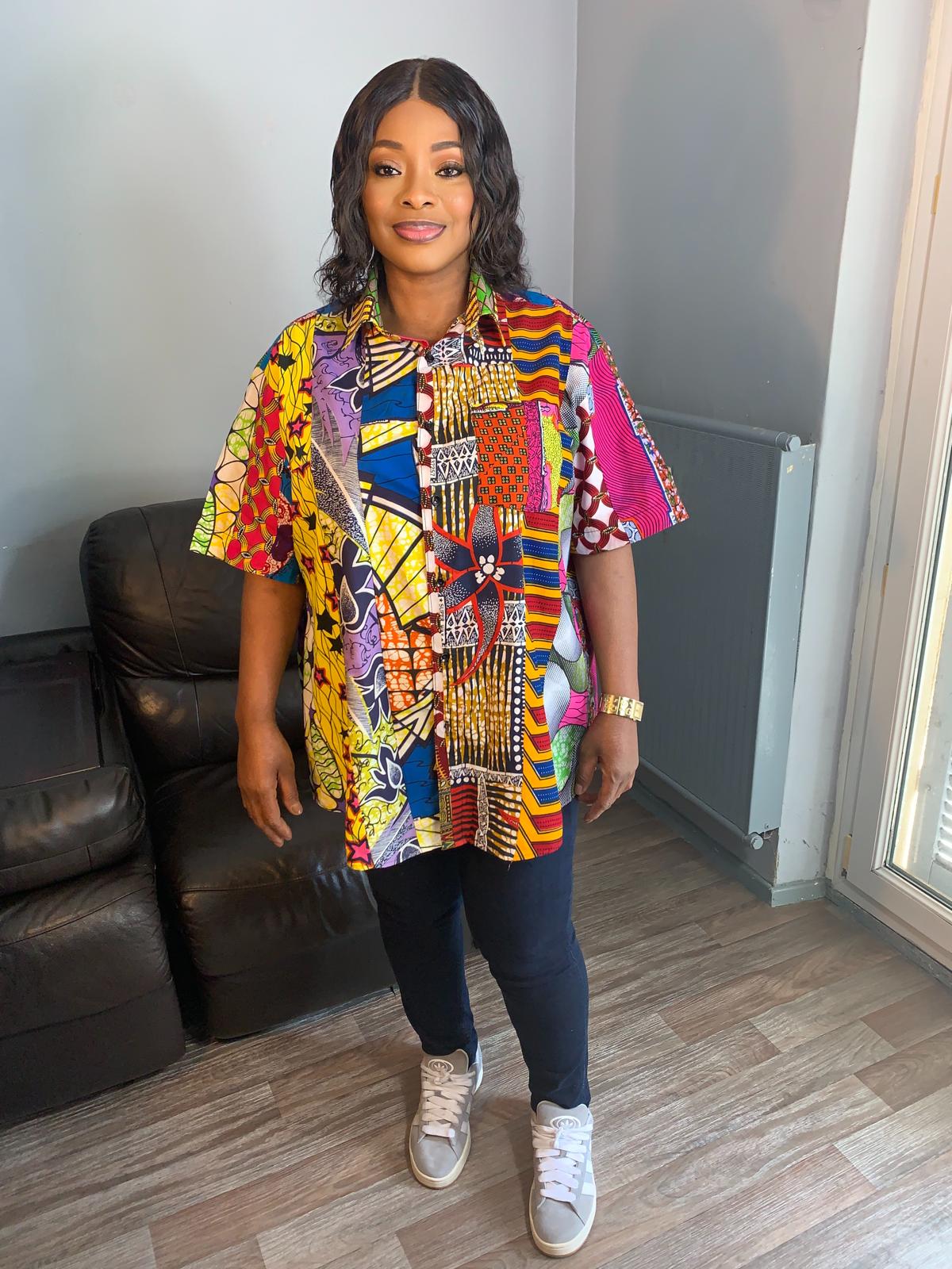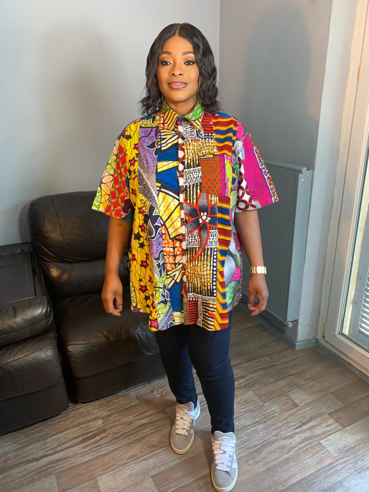 Buntes Patchwork-Wachs-Ankara-Hemd
