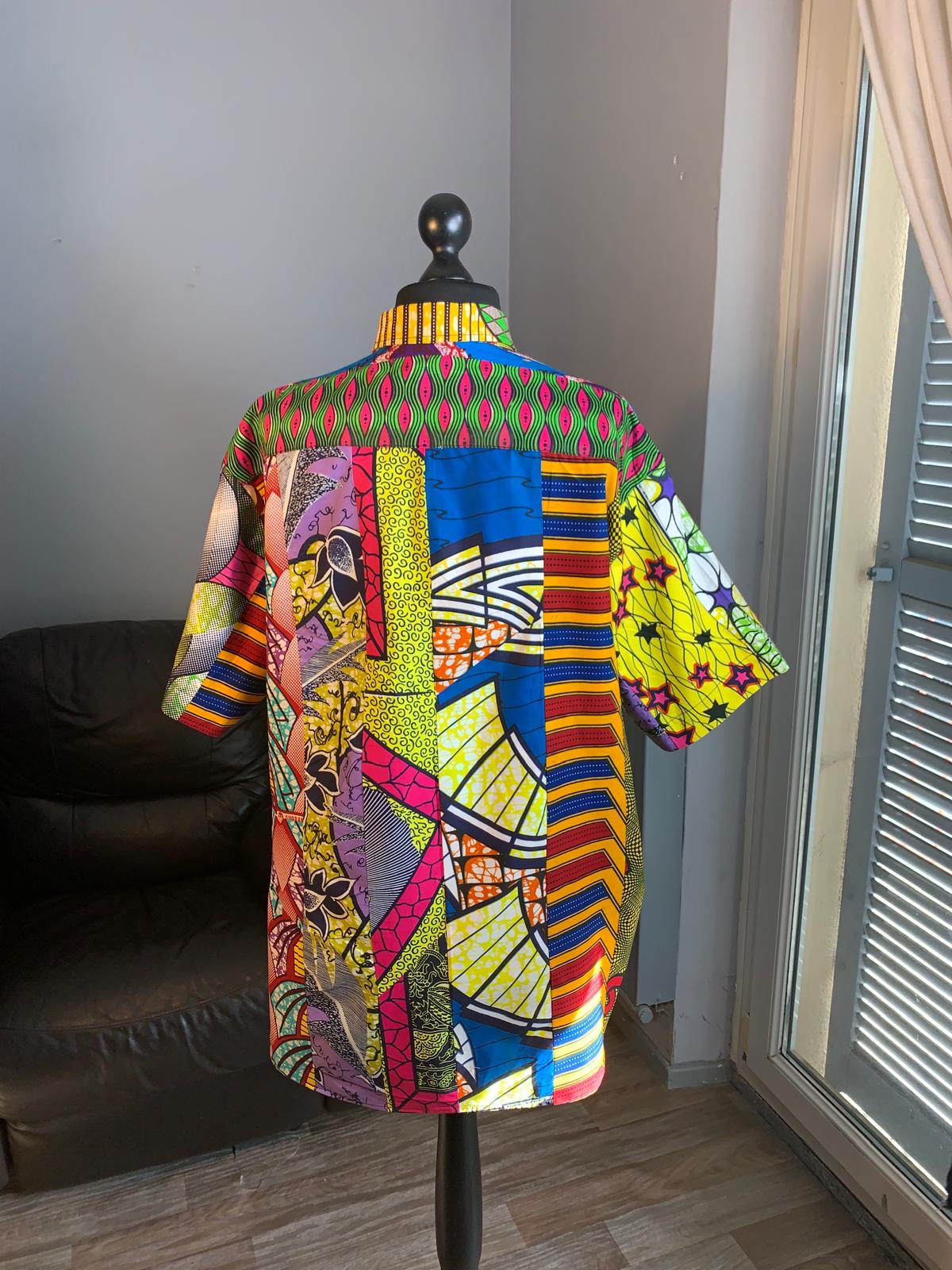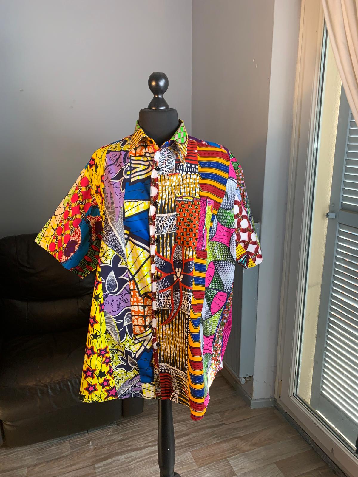Afrikanisches Ankara-Wachs-Patchworkhemd mit Tasche. Größe XXXL