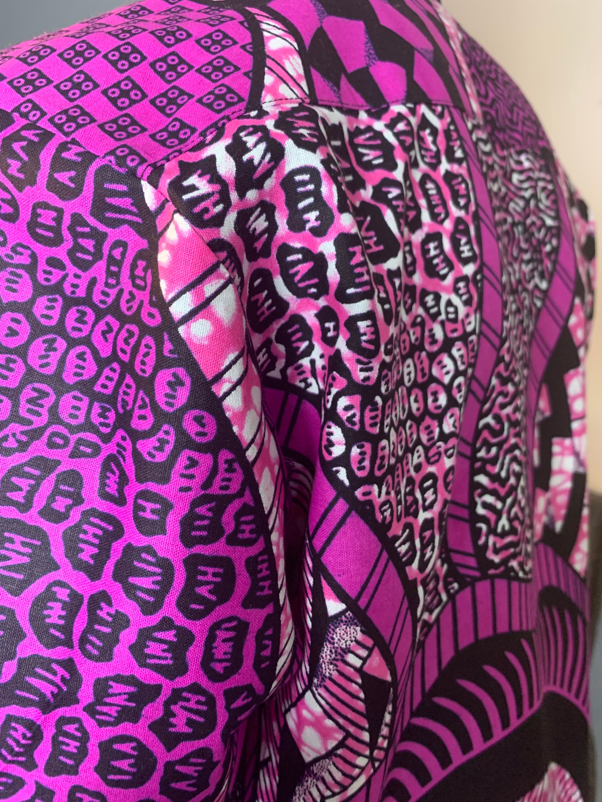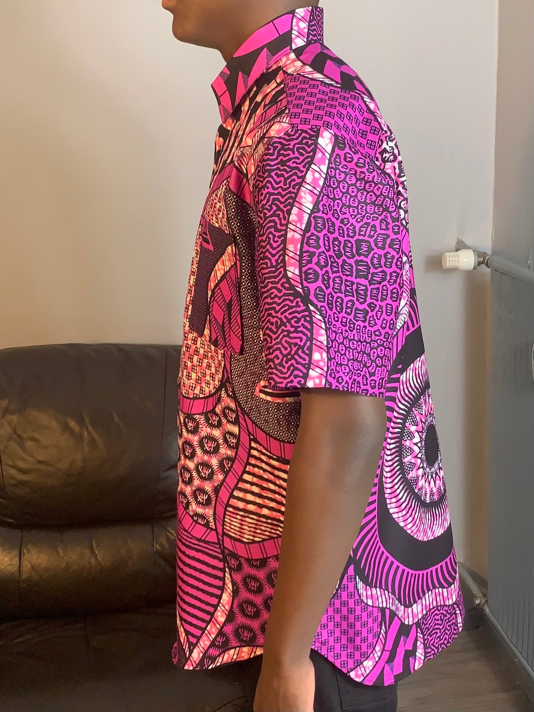 Wachshemd für Herren mit Ankara-Kragen, 100 % weiche Baumwolle, Rosa.