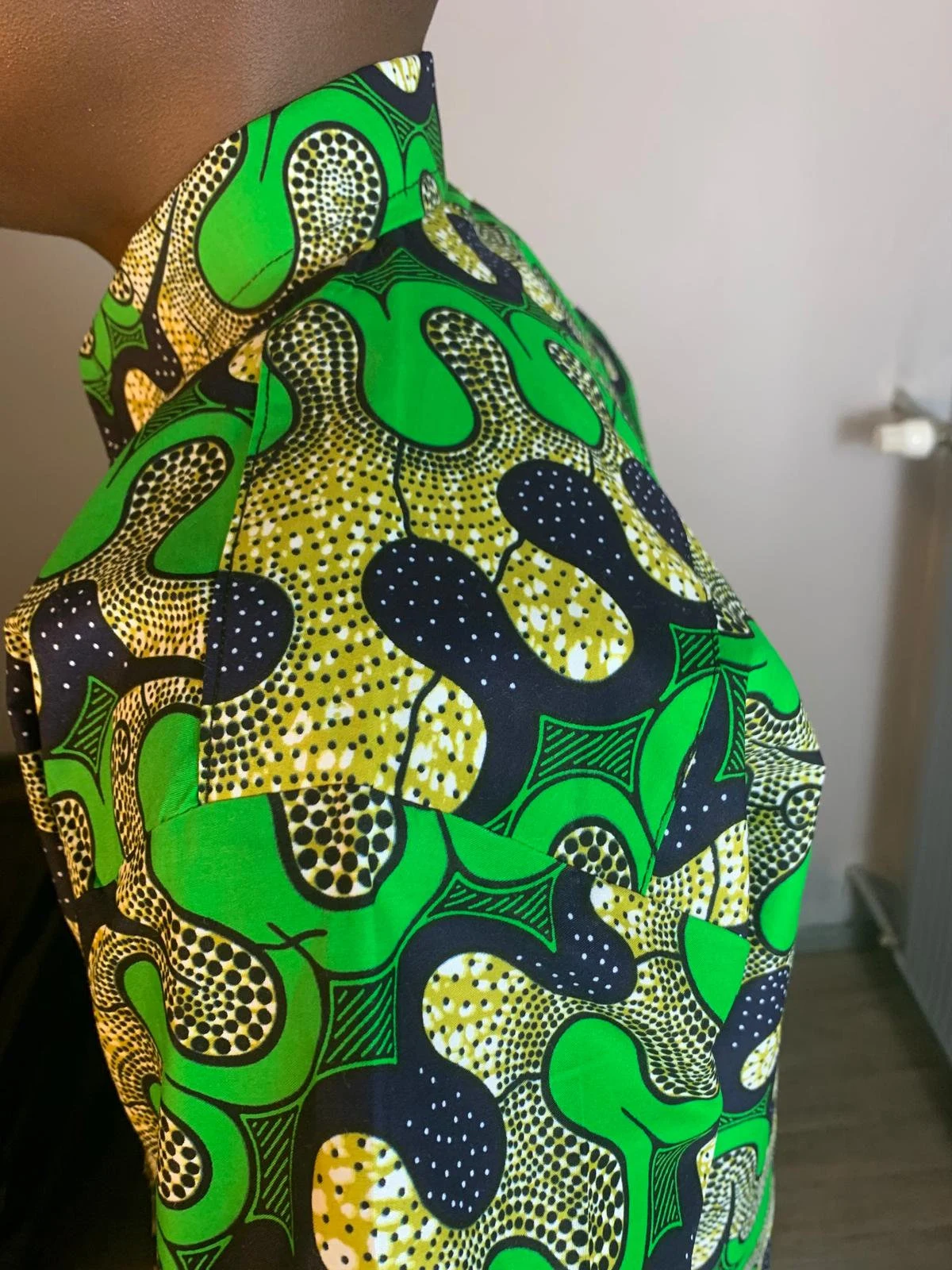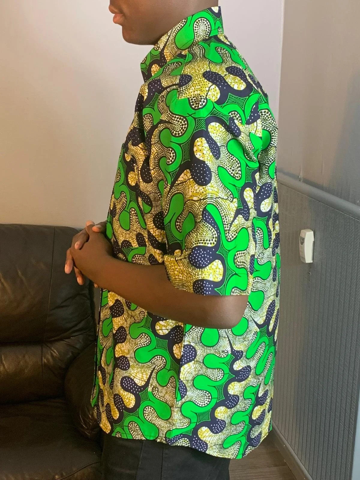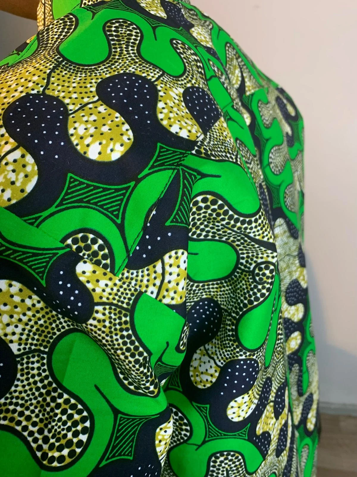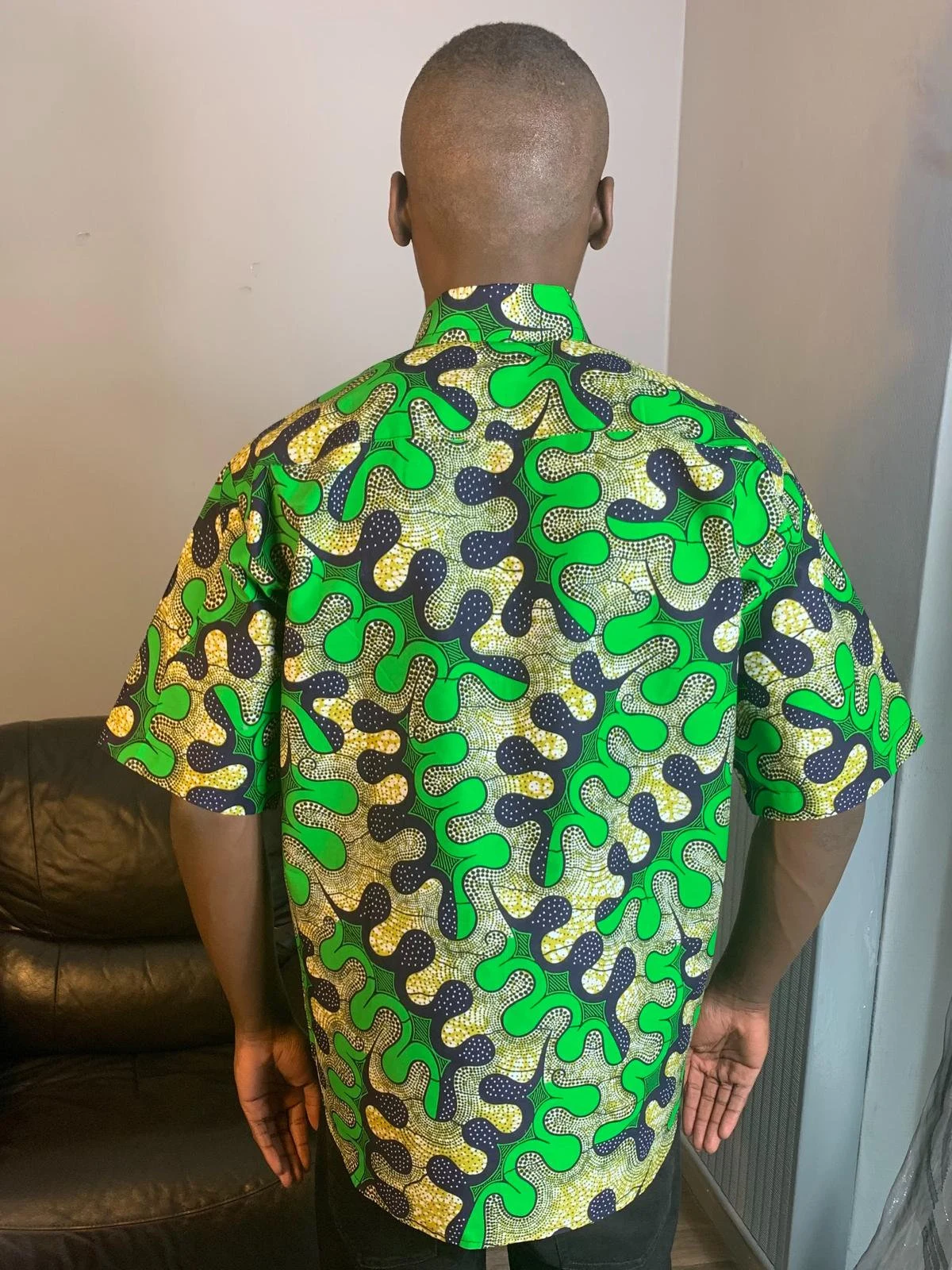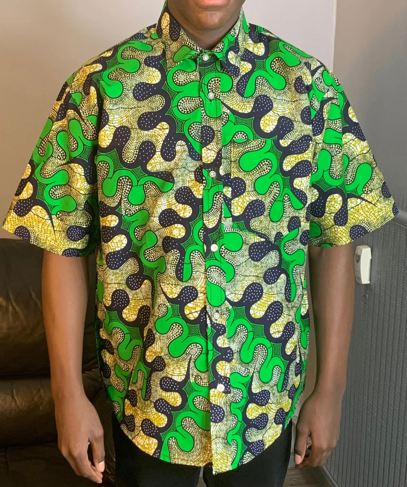 Afrikanische Wachshemden mit grünem Korallenmuster. Erhältlich in nur 3 Exemplaren in L und XXL.