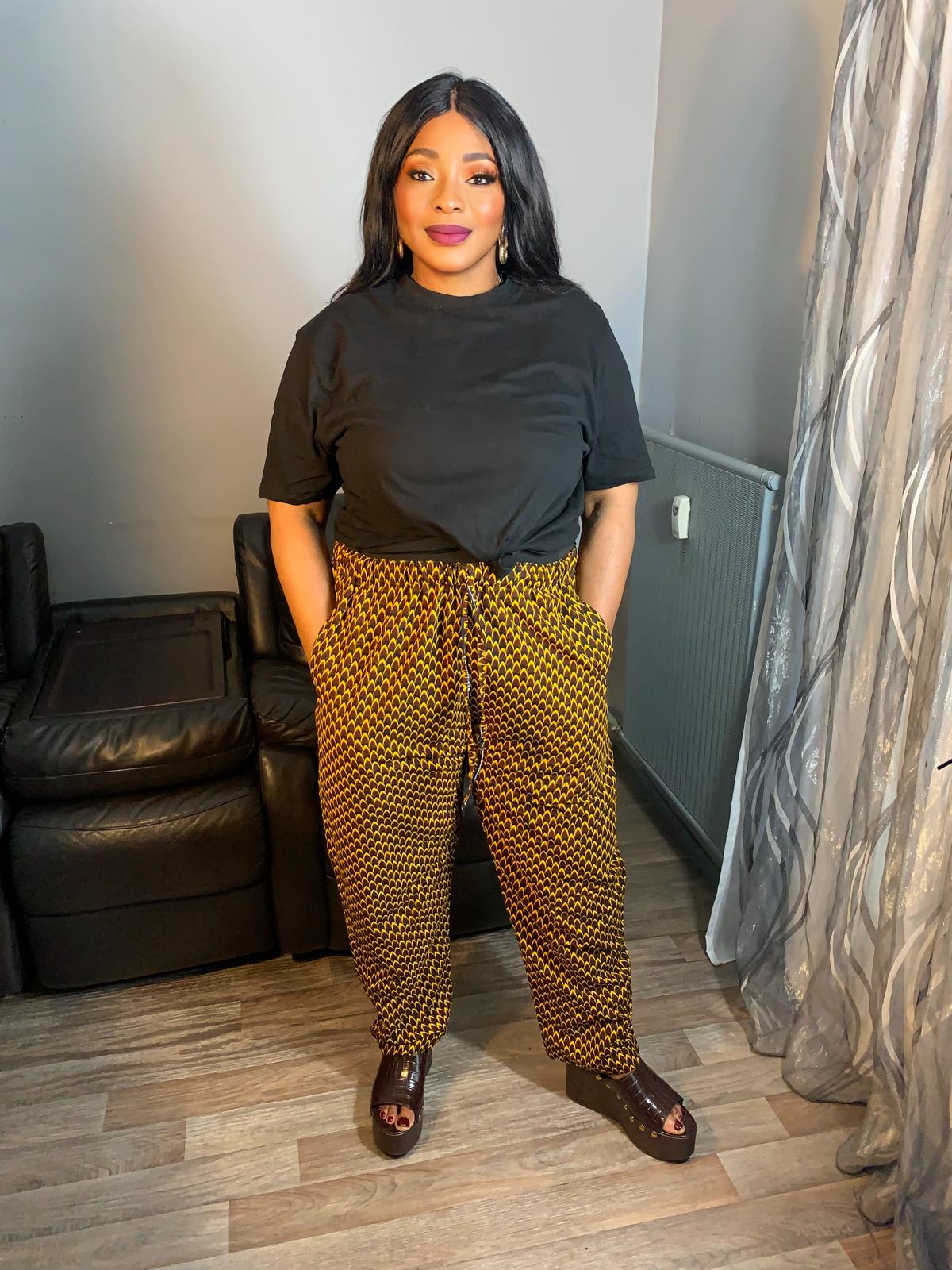 Découvrez notre pantalon wax. Conçu pour s'adapter à toutes les tailles grâce à ses élastiques et son fil ajustable, ce pantalon unisexe offre non seulement un confort exceptionnel, mais aussi une touche de style audacieux à toute tenue. Exprimez votre individualité avec ce mélange unique de motifs et de couleurs. Ce pantalon complétera a ravir votre style durant cet été, wax de qualité supérieure.
