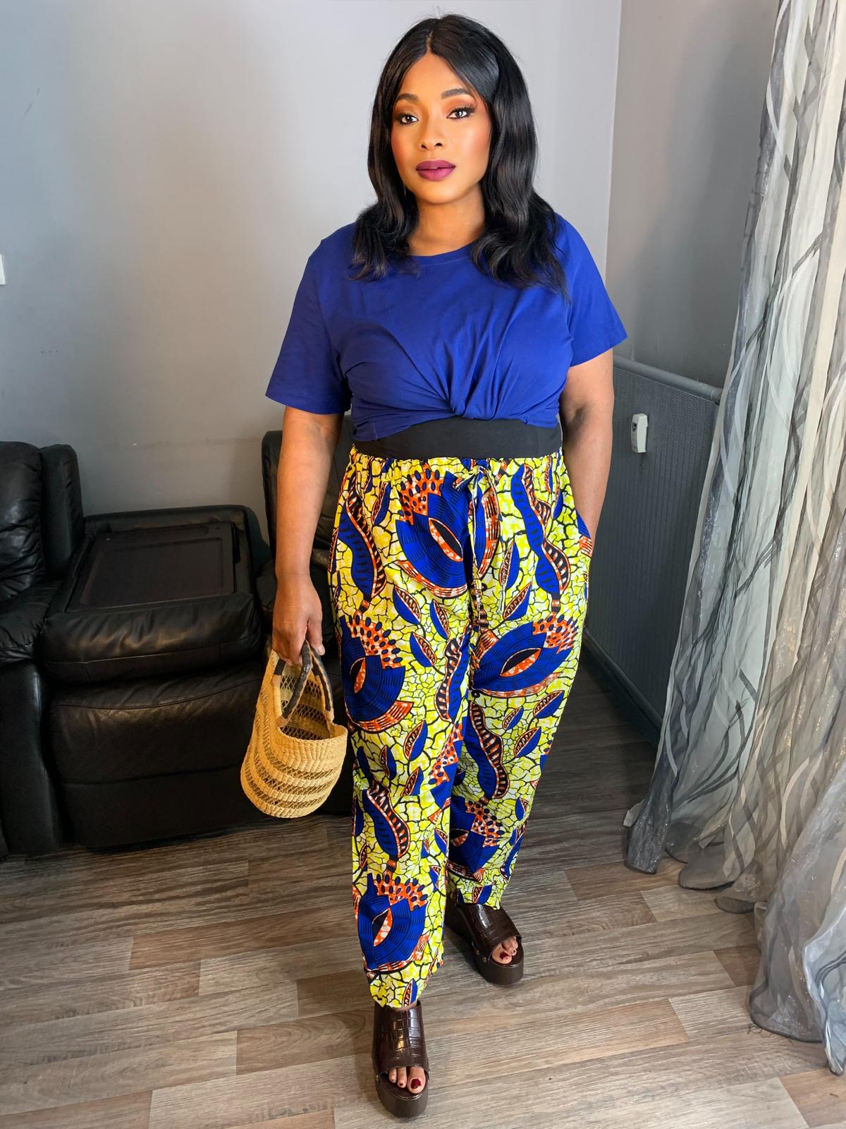 Découvrez notre pantalon wax. Conçu pour s'adapter à toutes les tailles grâce à ses élastiques et son fil ajustable, ce pantalon unisexe offre non seulement un confort exceptionnel, mais aussi une touche de style audacieux à toute tenue. Exprimez votre individualité avec ce mélange unique de motifs et de couleurs. Ce pantalon complétera a ravir votre style durant cet été, wax de qualité supérieure.