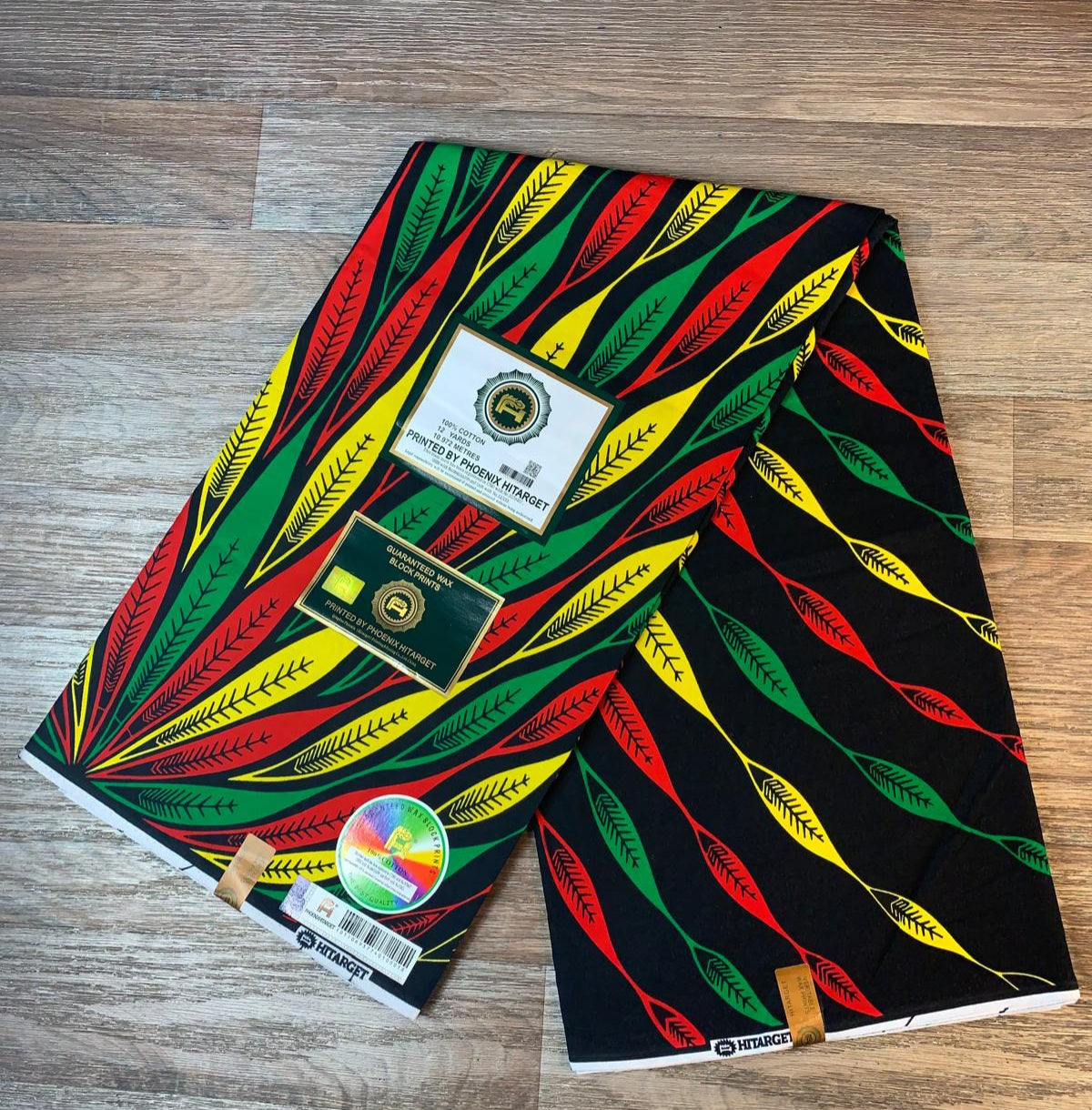 Tissus Wax Hitarget de qualité supérieure. Longueur : 1,16m. 1 yards (0,91m), 2 yards (1,82m), 3 yards (2,74m), 4 yards (3,65m), 5 yards (4,57m), 6 yards (5,48m. Largeur du tissus : 0,91m. Matière : 100% coton. Wax très doux