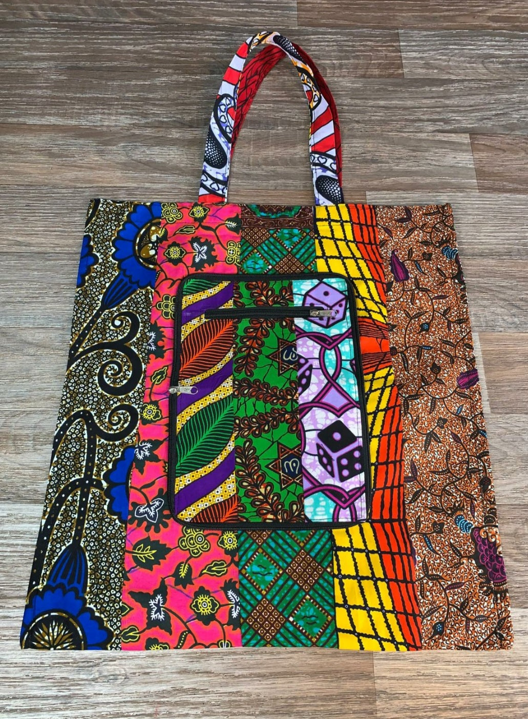 Tote Bag Patchwork En Wax. Wax 100% Coton XL Pliable avec Fermeture Éclaire. Wax de qualité supérieure