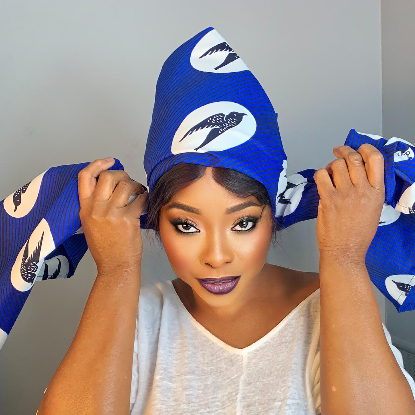 Foulard-Turban mit Speed-Bird-Muster aus afrikanischem Wachs