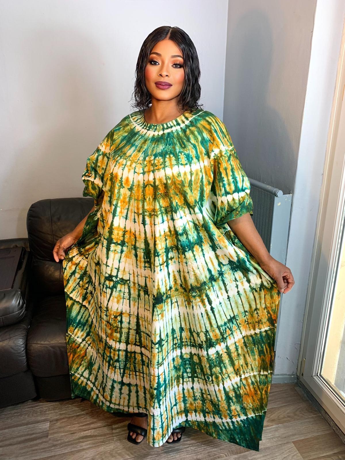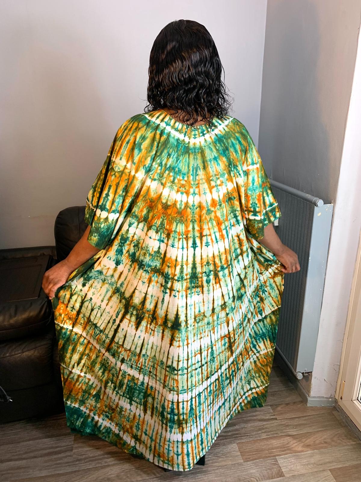 Langes Boubou-Batikkleid. Handgefärbt. Material: 100 % Baumwolle. Rundhalsausschnitt. Erhältlich in 1 Exemplar in 1 anderen Farbe.
