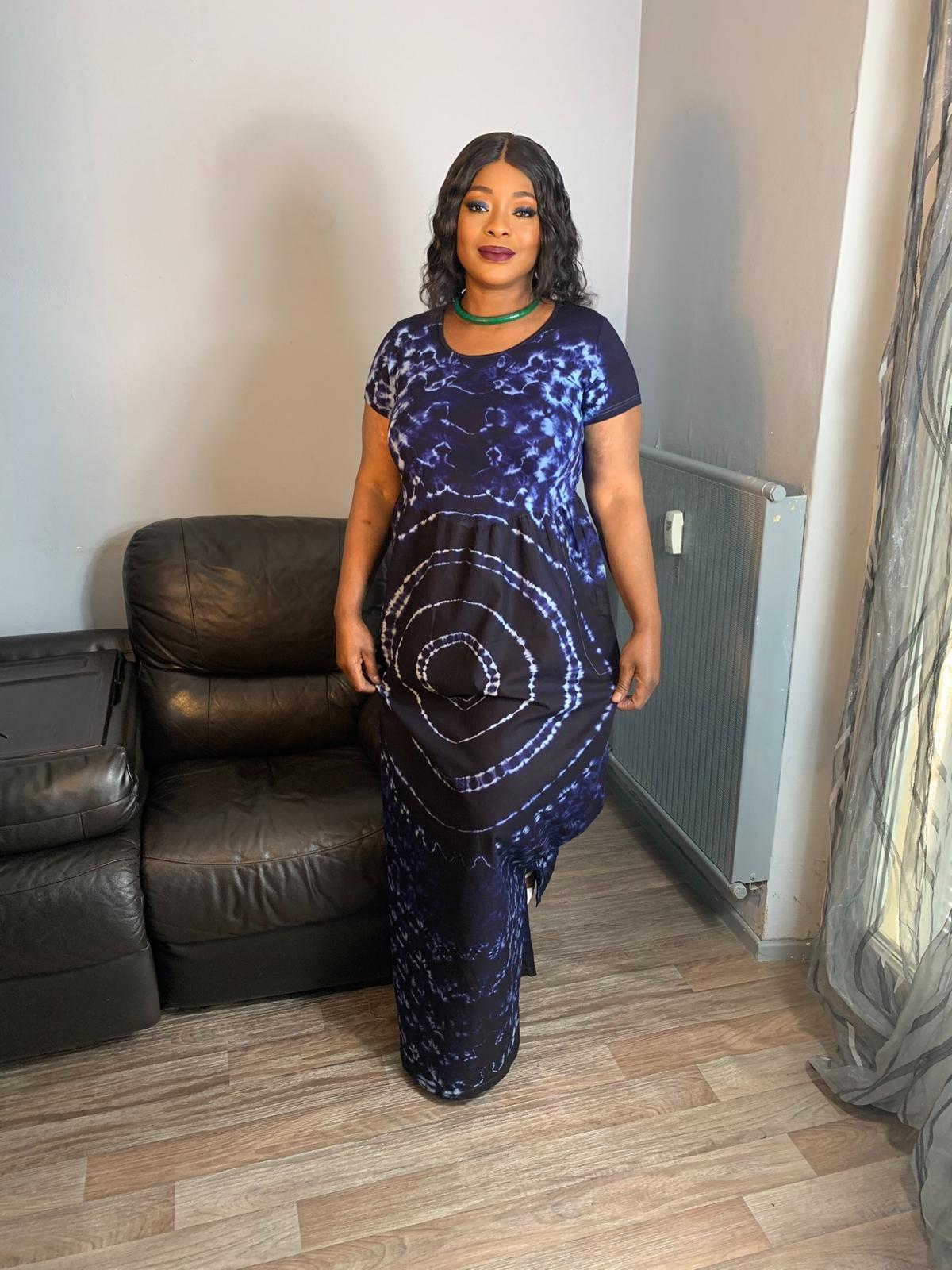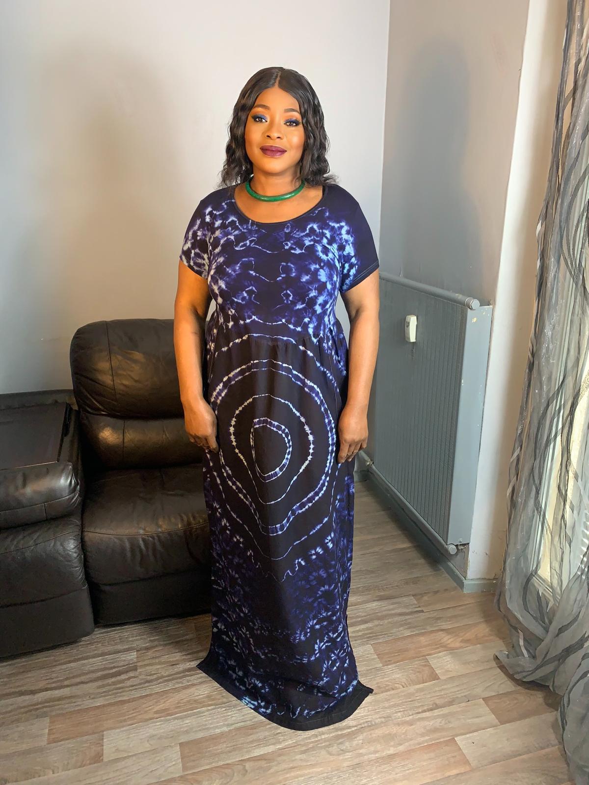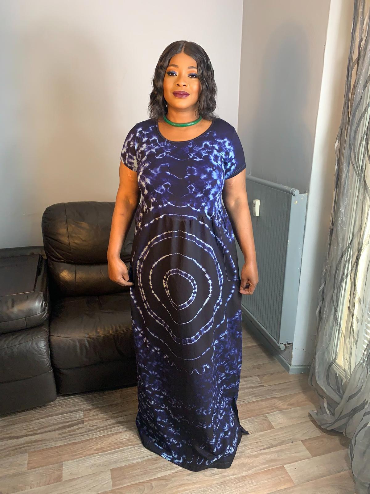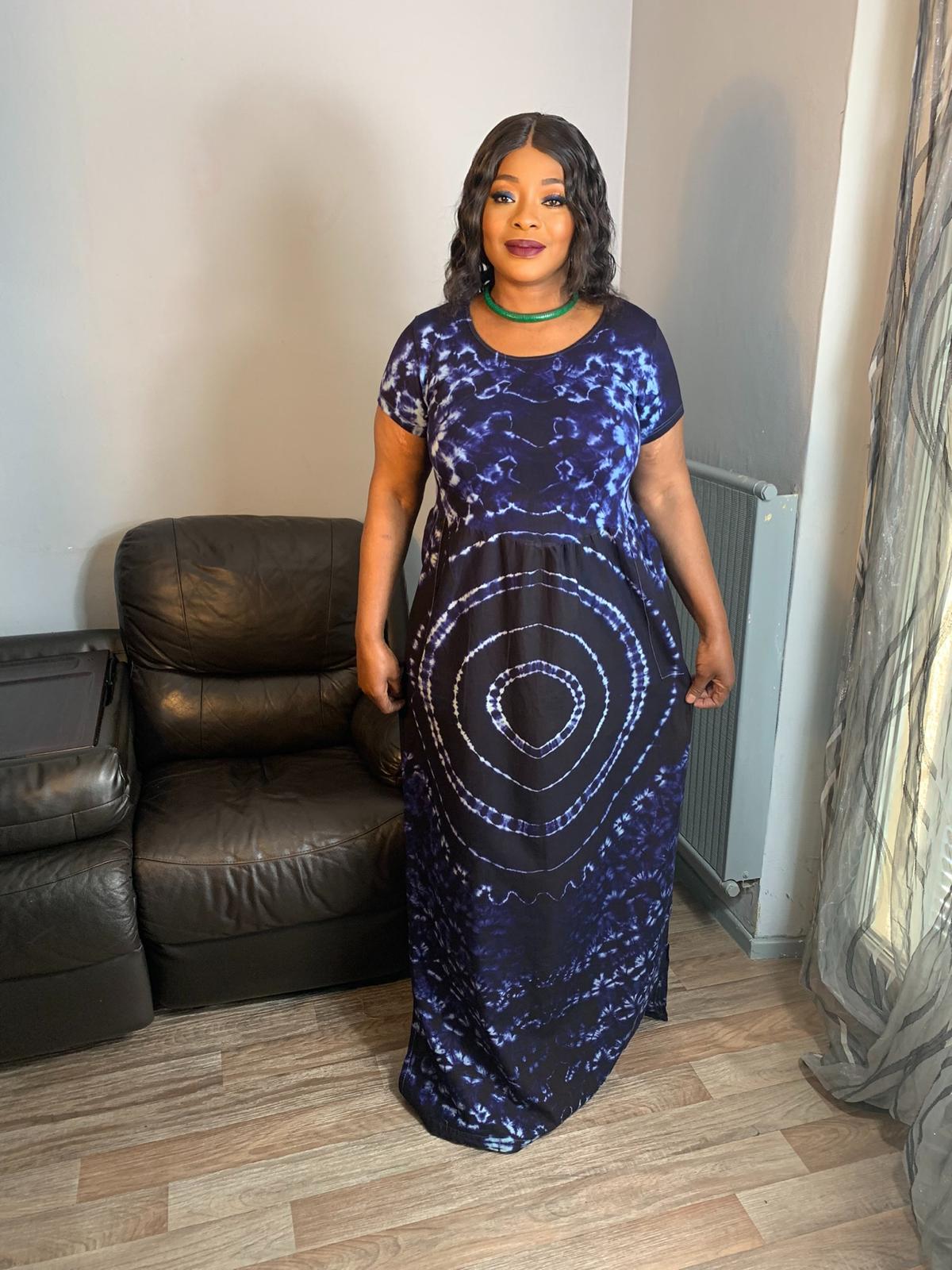 Indigoblaues Adire-T-Shirt-Kleid im Tye-and-Dye-Stil