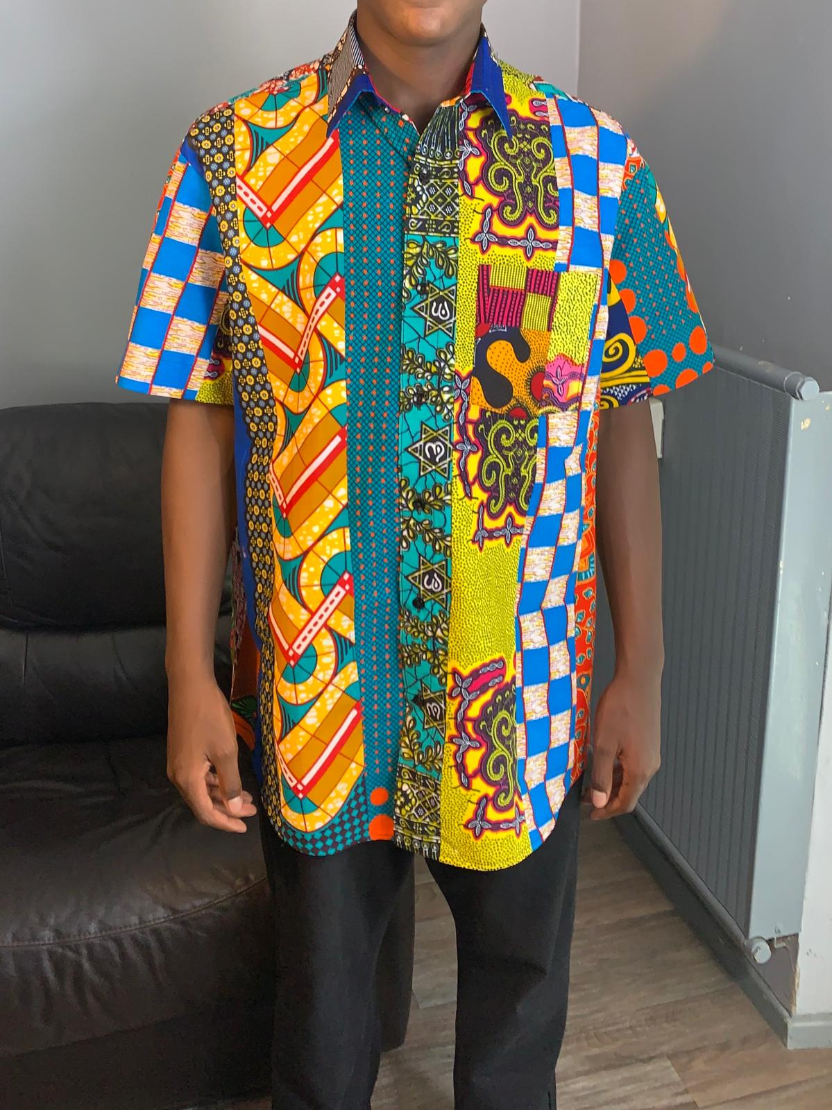 Buntes Patchwork-Wachs-Ankara-Hemd