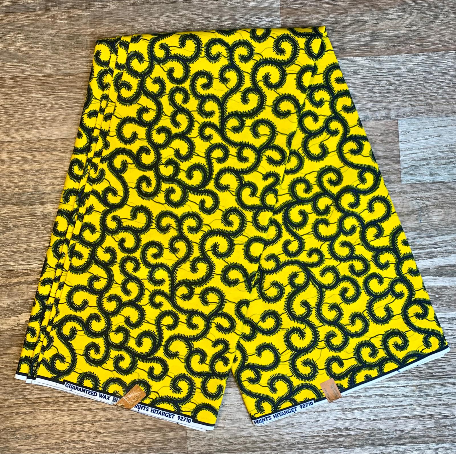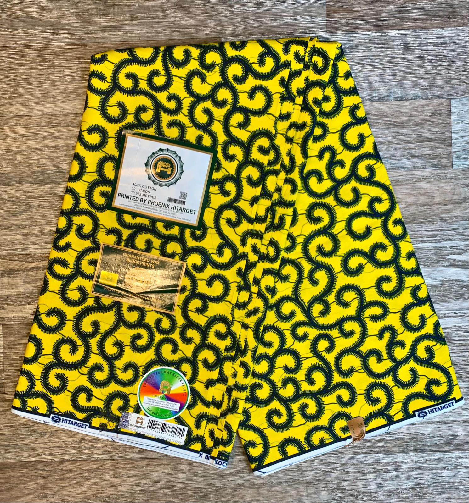 Tissus Wax Africain 100% Coton Ankara 1 à 6 yards Wax Hitarget motif : Macaroni Jaune