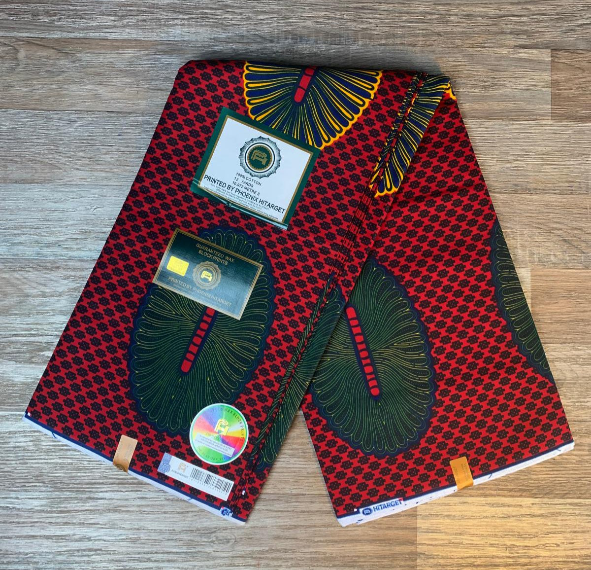 Tissus Wax Africain 100% Coton Ankara 1 à 12 yards Wax Hitarget Rouge jaune Vert Ankara