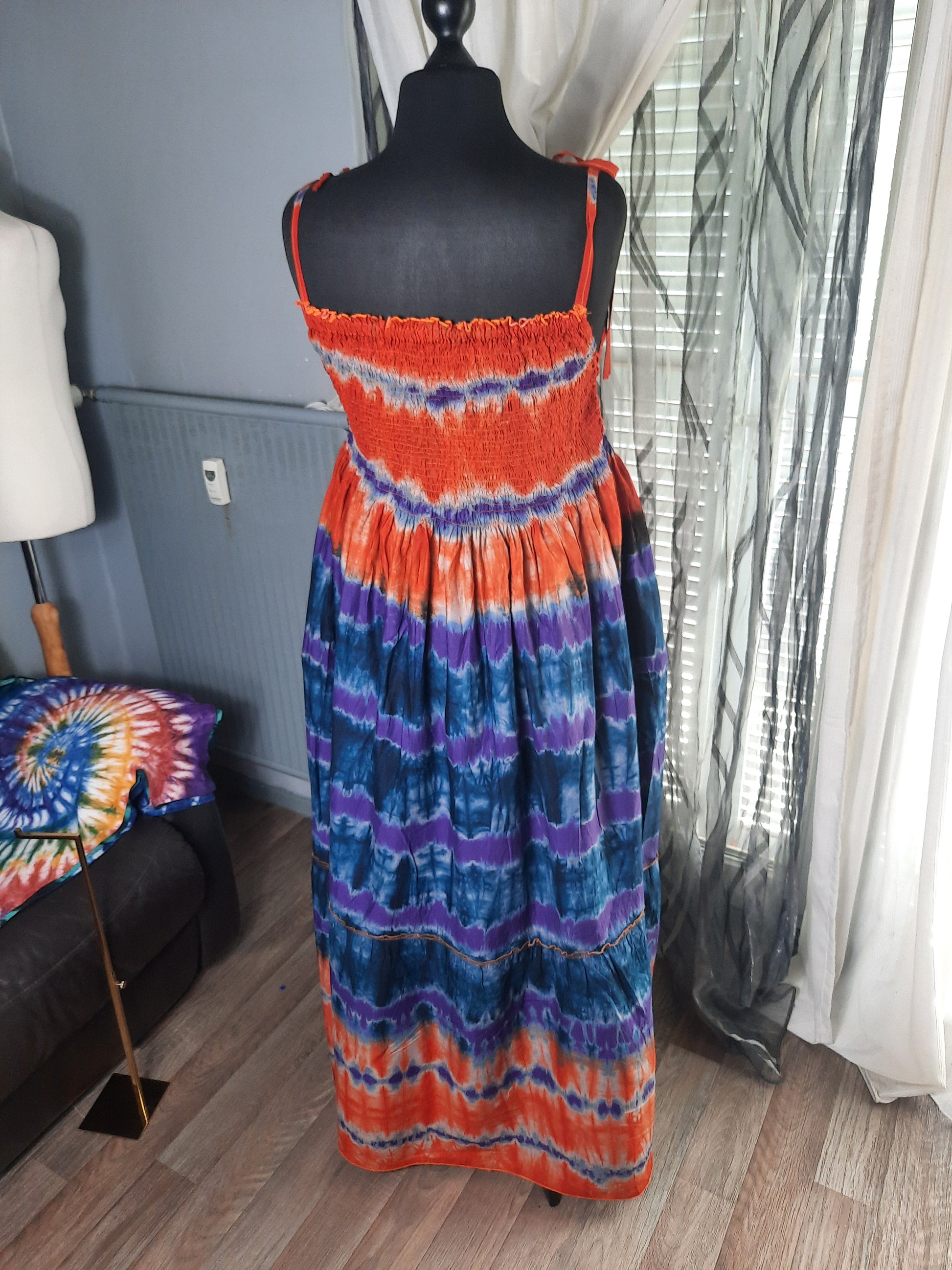 Robe Longue Indigo Batik, Tye and Dye Multicolore