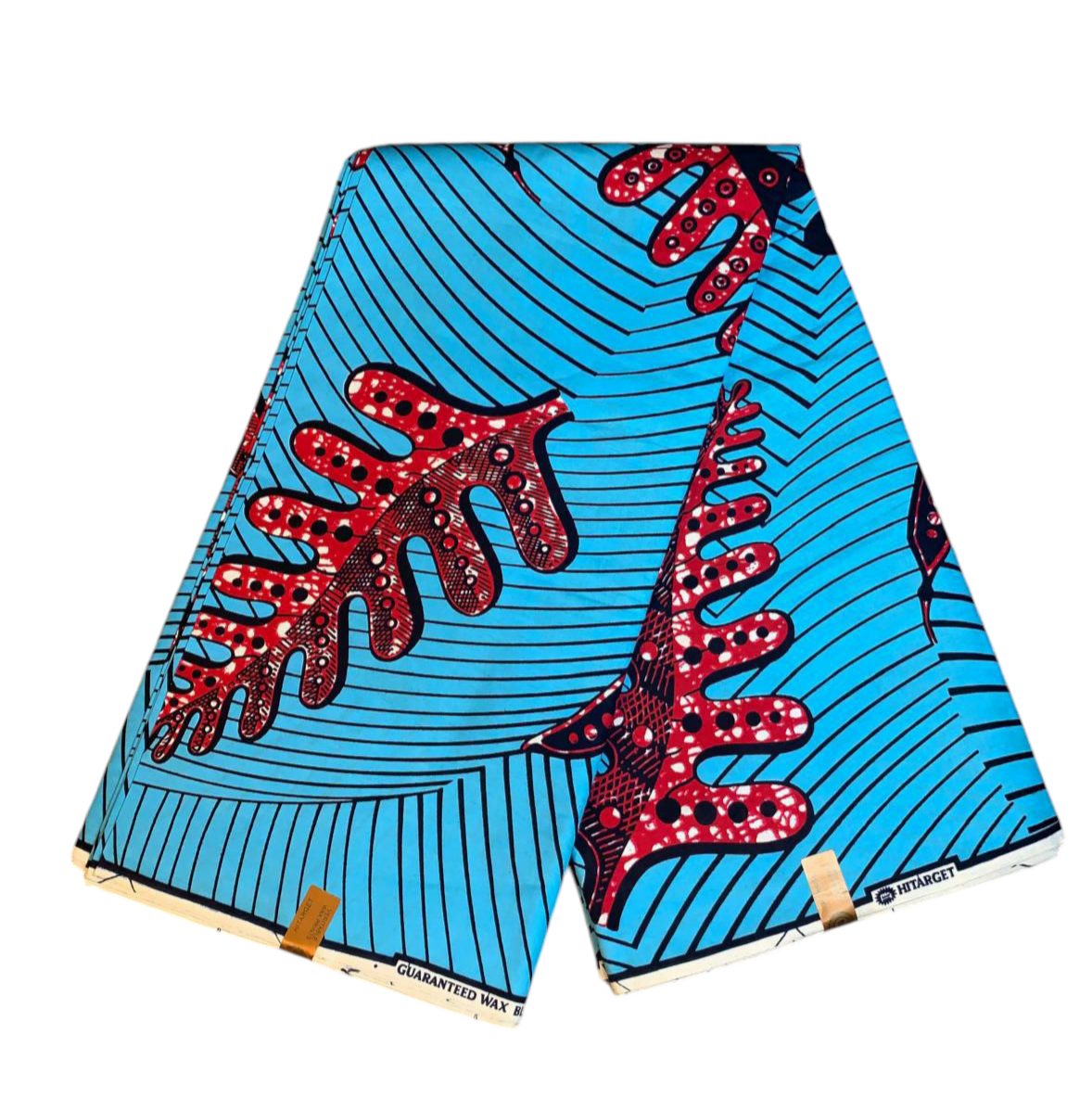 Tissus Wax Africain 100% Coton Ankara 1 à 12 yards Wax Hitarget motif : Coraux Turquoise