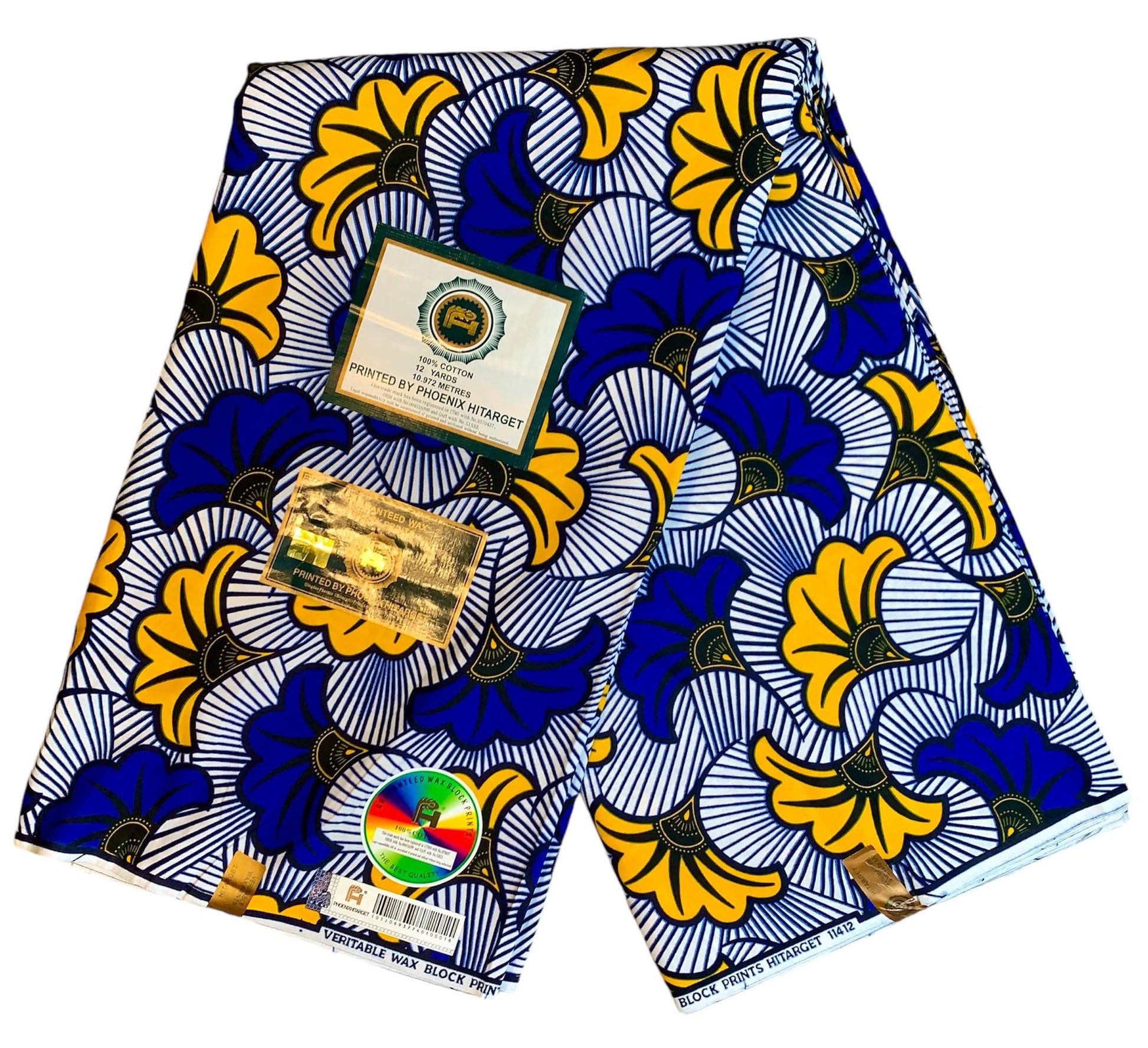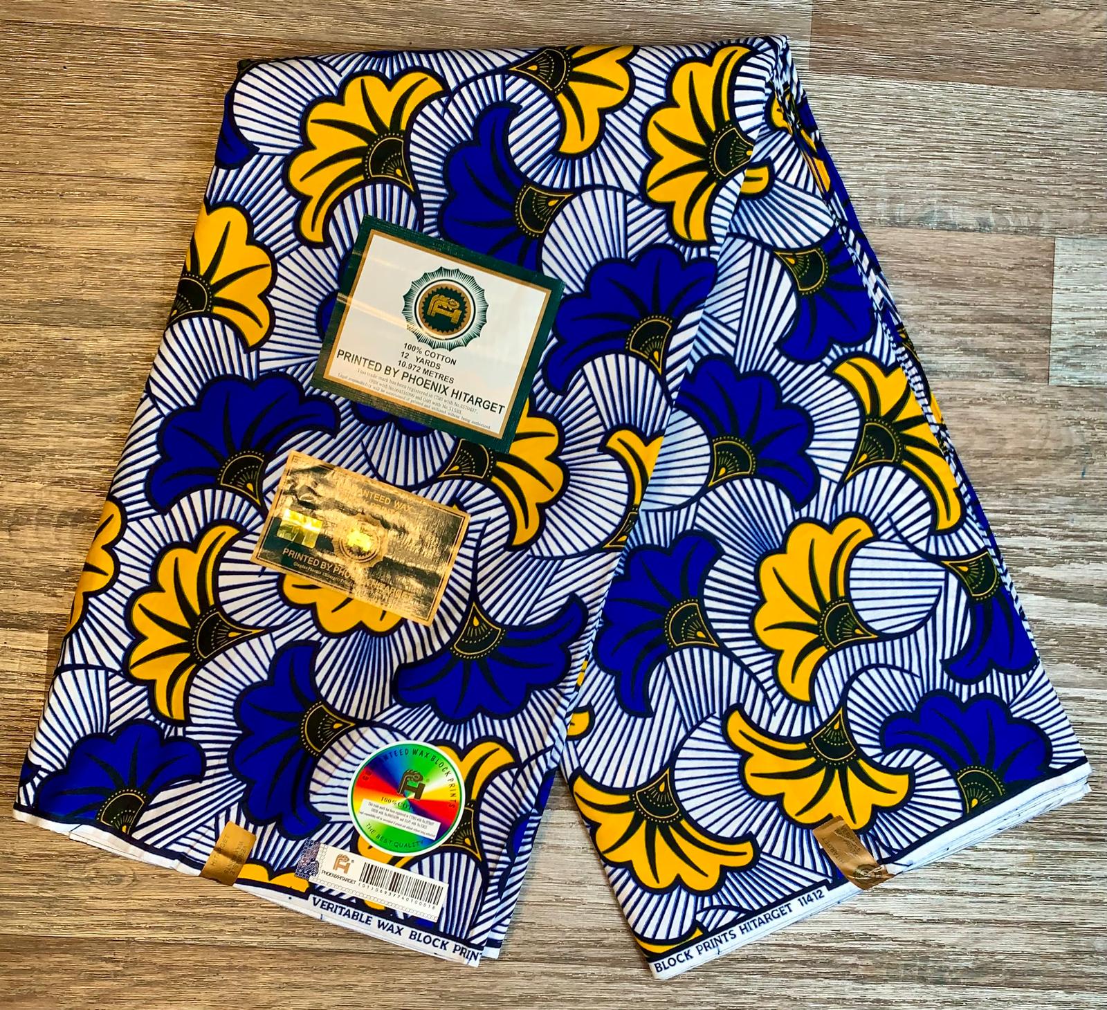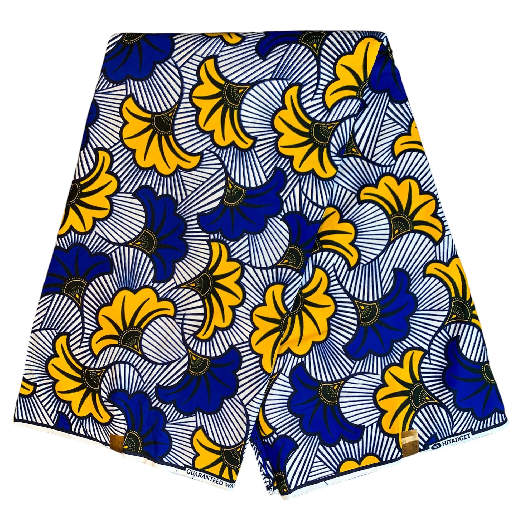 Tissus Wax Hitarget de qualité supérieure. Longueur : 1,16m. 1 yards (0,91m), 2 yards (1,82m), 3 yards (2,74m), 4 yards (3,65m), 5 yards (4,57m), 6 yards (5,48m) et 12 yards (10,98m) . Largeur du tissus : 0,91m. Matière : 100% coton. Wax très doux